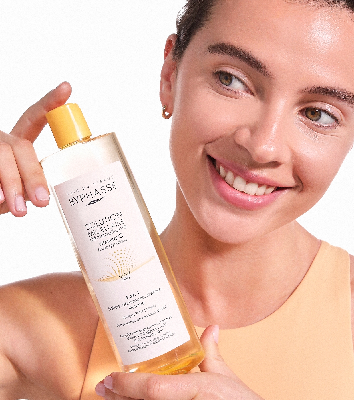 Devuelve la luminosidad a tu piel con la solución micelar de Byphasse con vitamina C, formulada para limpiar, iluminar y mejorar el aspecto del rostro en un solo paso.