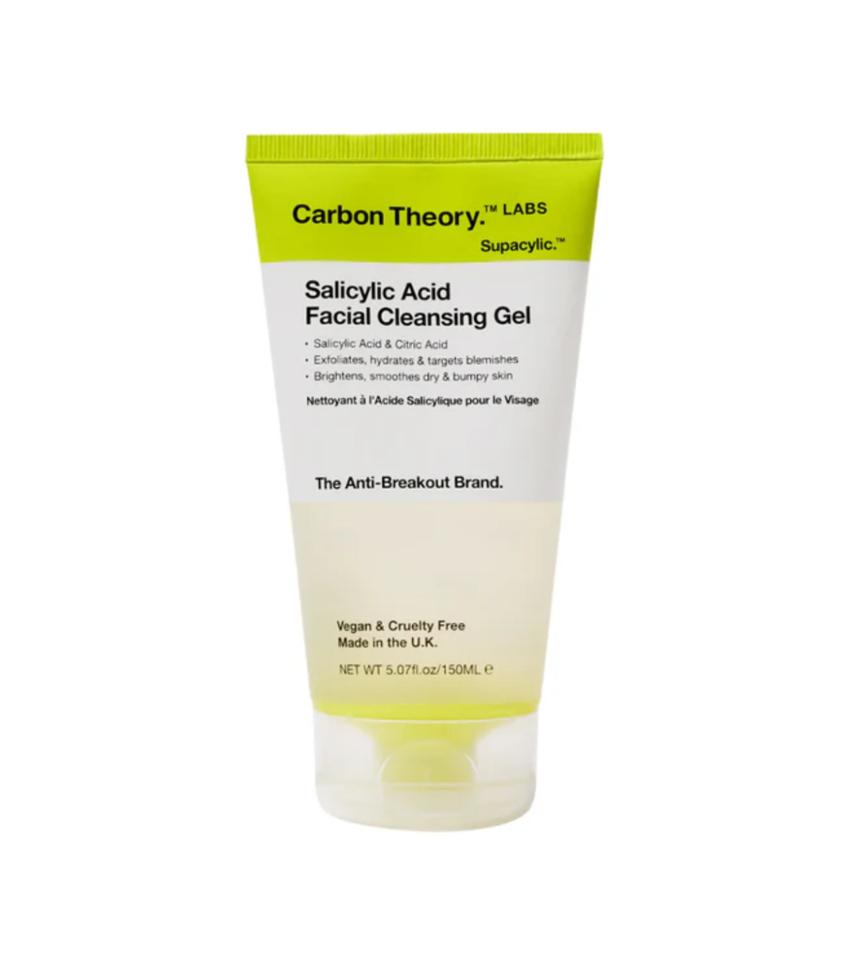 El gel limpiador exfoliante con ácido salicílico (BHA) de Carbon Theory al 0.5% ofrece la misma eficacia purificante de nuestra barra limpiadora exfoliante, pero en la comodidad de un tubo exprimible.