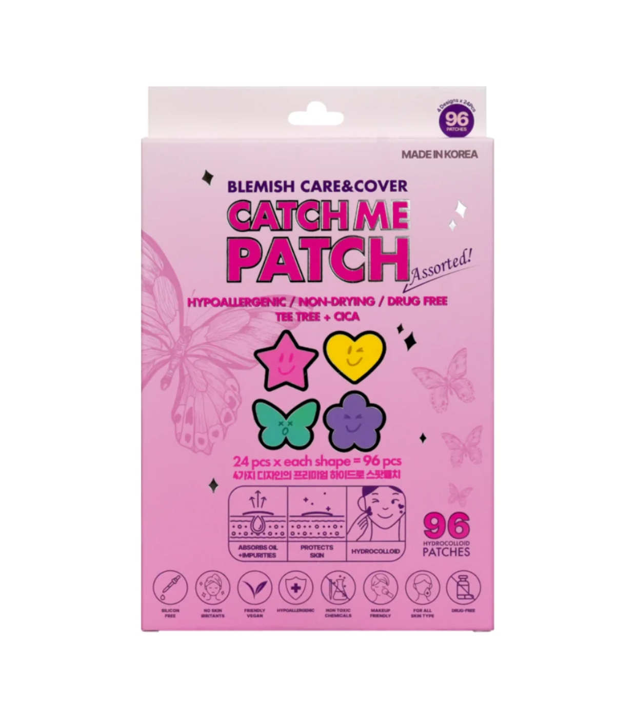 Descubre los parches para granos Assorted de Catch Me Patch para imperfecciones en divertidas formas que combina eficacia y cuidado en cada aplicación.
