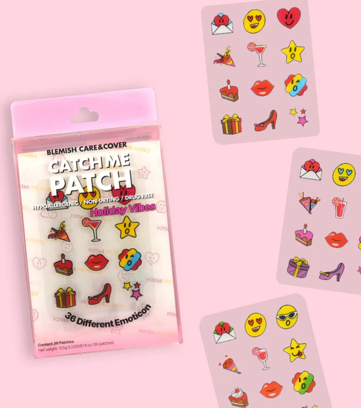 Incluye 36 parches, fáciles de transportar y utilizar en cualquier momento. Ideal para un cuidado eficaz de las imperfecciones con un toque divertido y discreto.