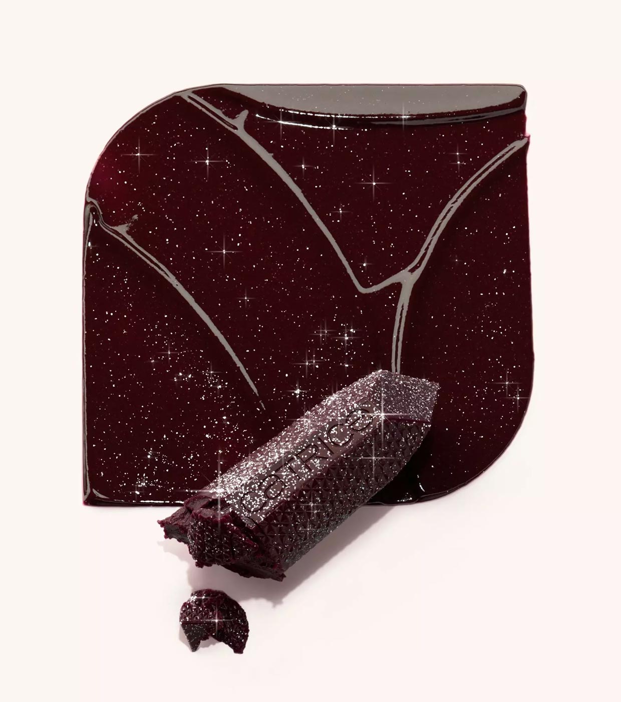 Este labial está recubierto con partículas brillantes como diamantes.