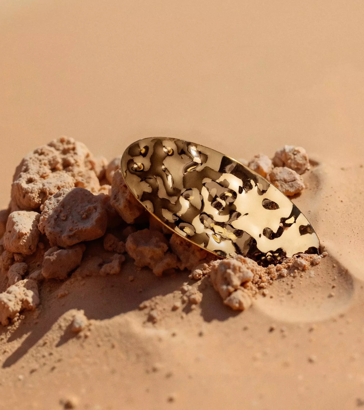 Inspirada en la majestuosidad de los paisajes dorados y la elegancia de una estética futurista, esta pinza para pelo de Catrice presenta un acabado dorado martillado que captura la luz como las dunas al atardecer.