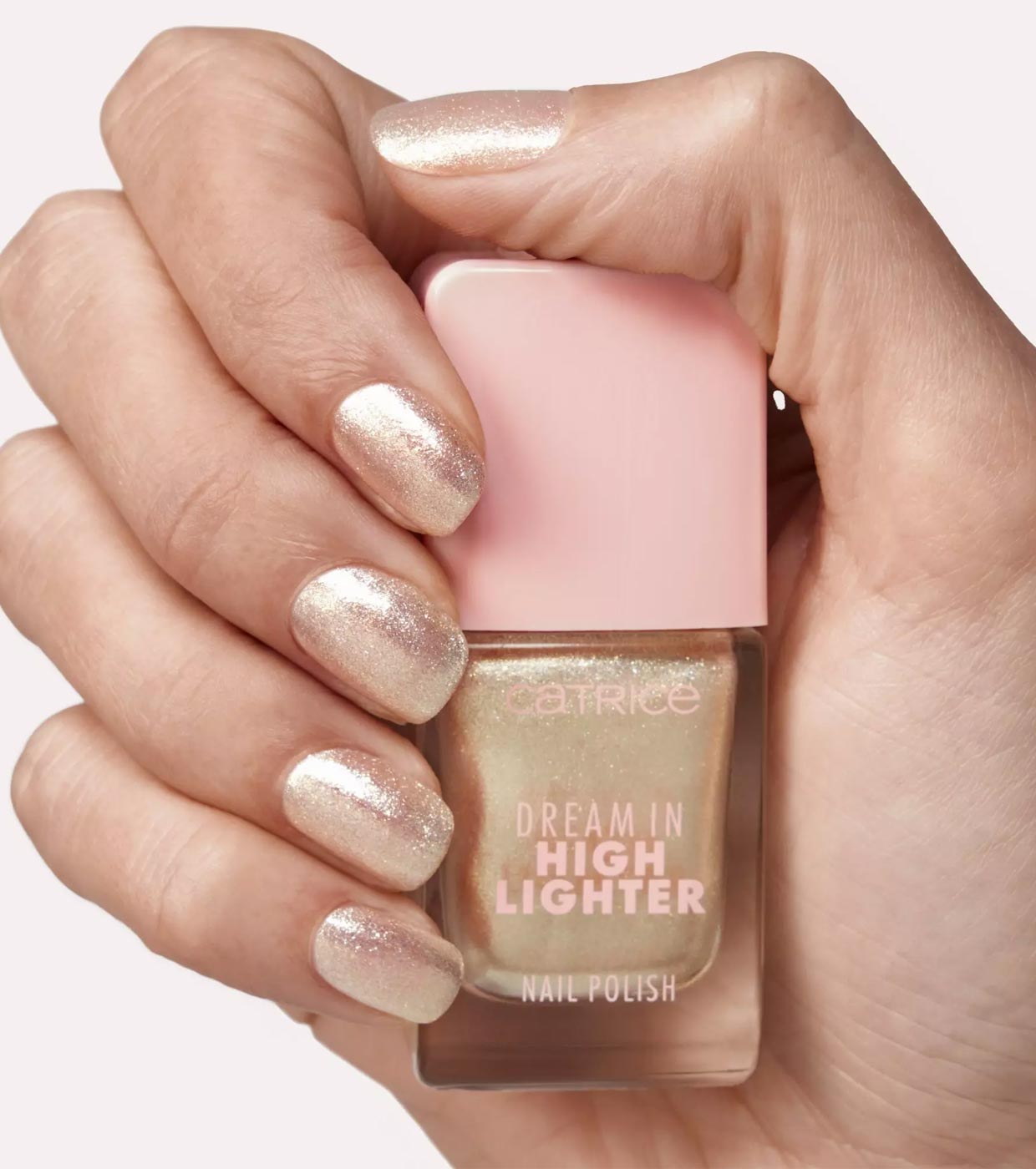 El esmalte de uñas Dream In Highlighter 070 Go With The Glow de Catrice proporciona a tus uñas un brillo sofisticado de color champán.