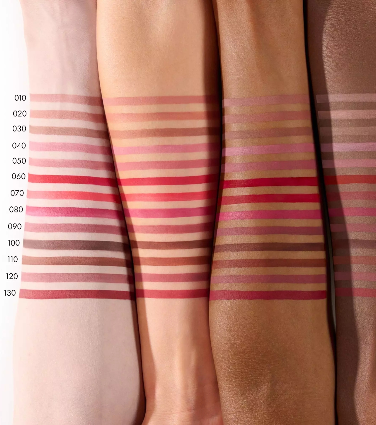 Su fórmula ligera y de alta duración se desliza suavemente sobre los labios para ofrecer un acabado mate aterciopelado que no se transfiere ni reseca.
