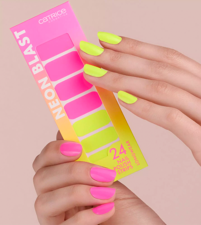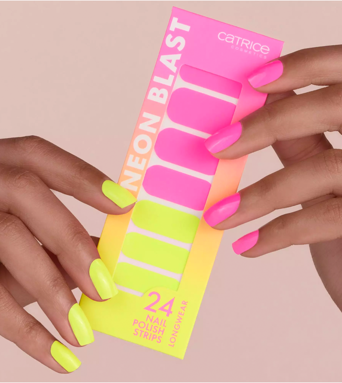 En rosa y amarillo brillante neón, las laminas de esmalte de uñas Neon Blast de Catrice garantizan unas uñas realmente