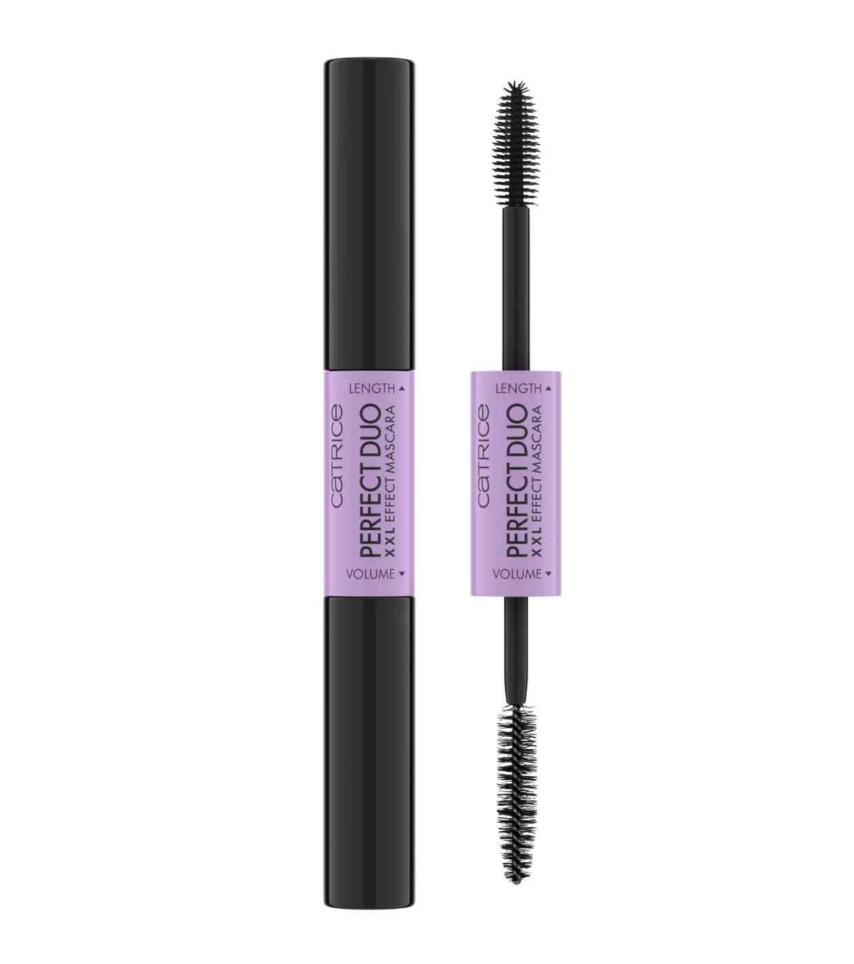 Máscara de pestañas Perfect Duo XXL Effect de Catrice, con dos cepillos para unas pestañas con un extra de volumen e intensidad.