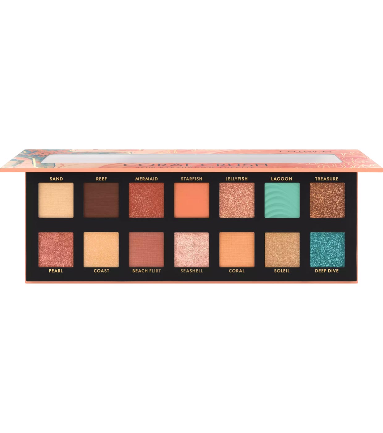 CORAL, LAGOON, REEF, SAND – INGREDIENTS: TALC, MICA, SILICA, MAGNESIUM STEARATE, HYDROGENATED POLYISOBUTENE, DIMETHICONE, POLYISOBUTENE, ETHYLHEXYL PALMITATE, SIMMONDSIA CHINENSIS (JOJOBA) SEED OIL, TOCOPHERYL ACETATE, TOCOPHEROL, TRIMETHYLSILOXYSILICATE, ETHYLHEXYLGLYCERIN, PHENOXYETHANOL, MAY CONTAIN/42090 (BLUE 1 LAKE), CI 77491, CI 77492, CI 77499 (IRON OXIDES), CI 77891 (TITANIUM DIOXIDE).