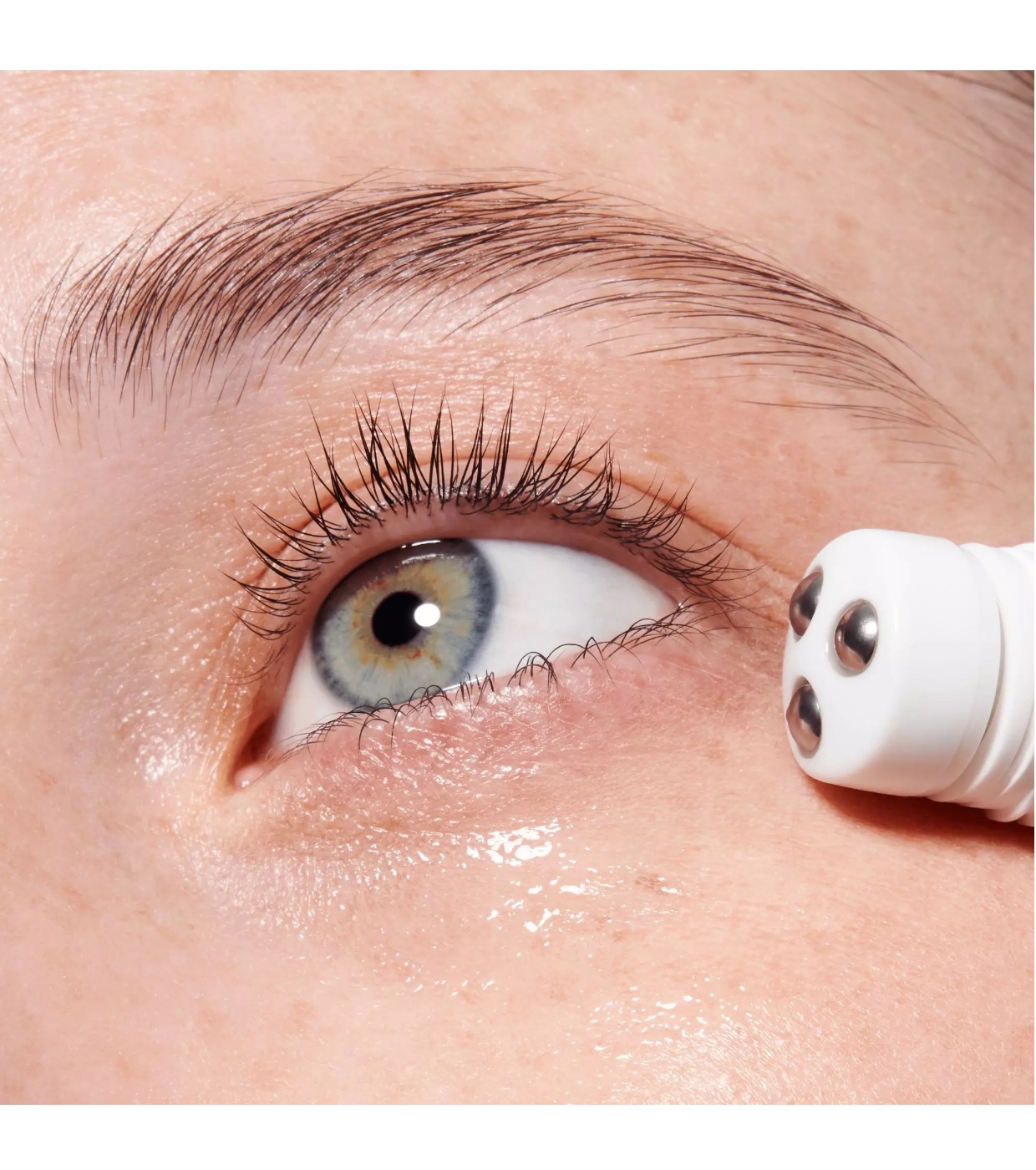 Este sérúm para el contorno de los ojos contiene unos aplicadores metálicos, para descongestionar la zona al instante.