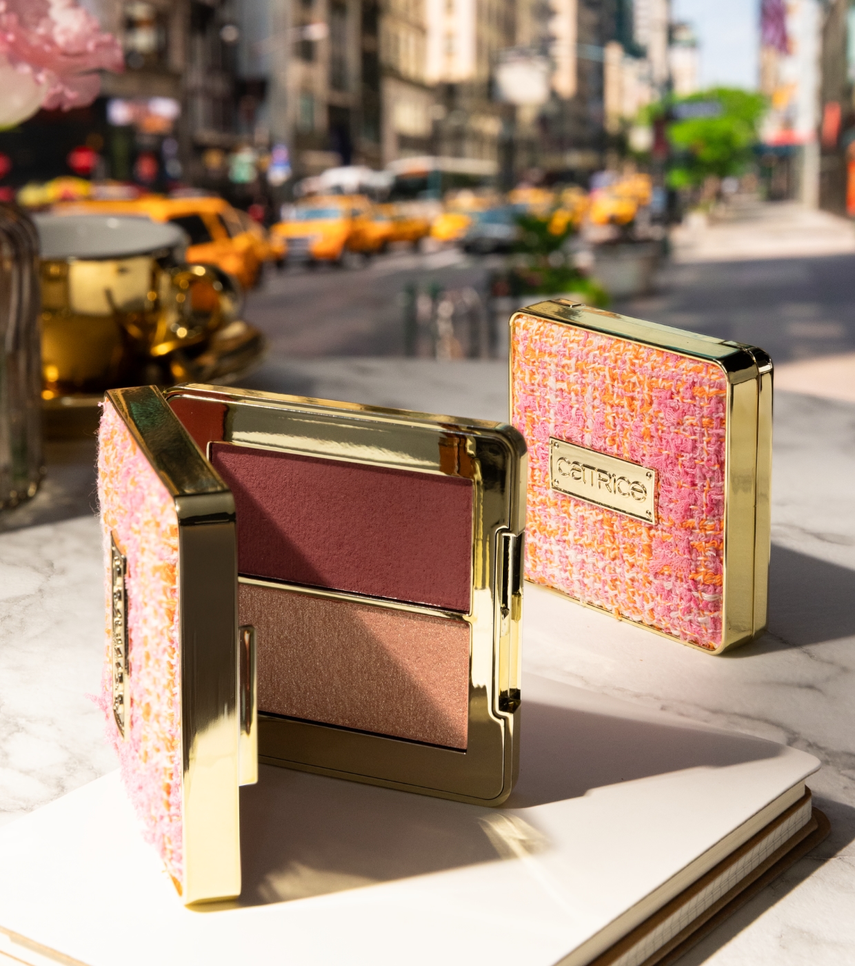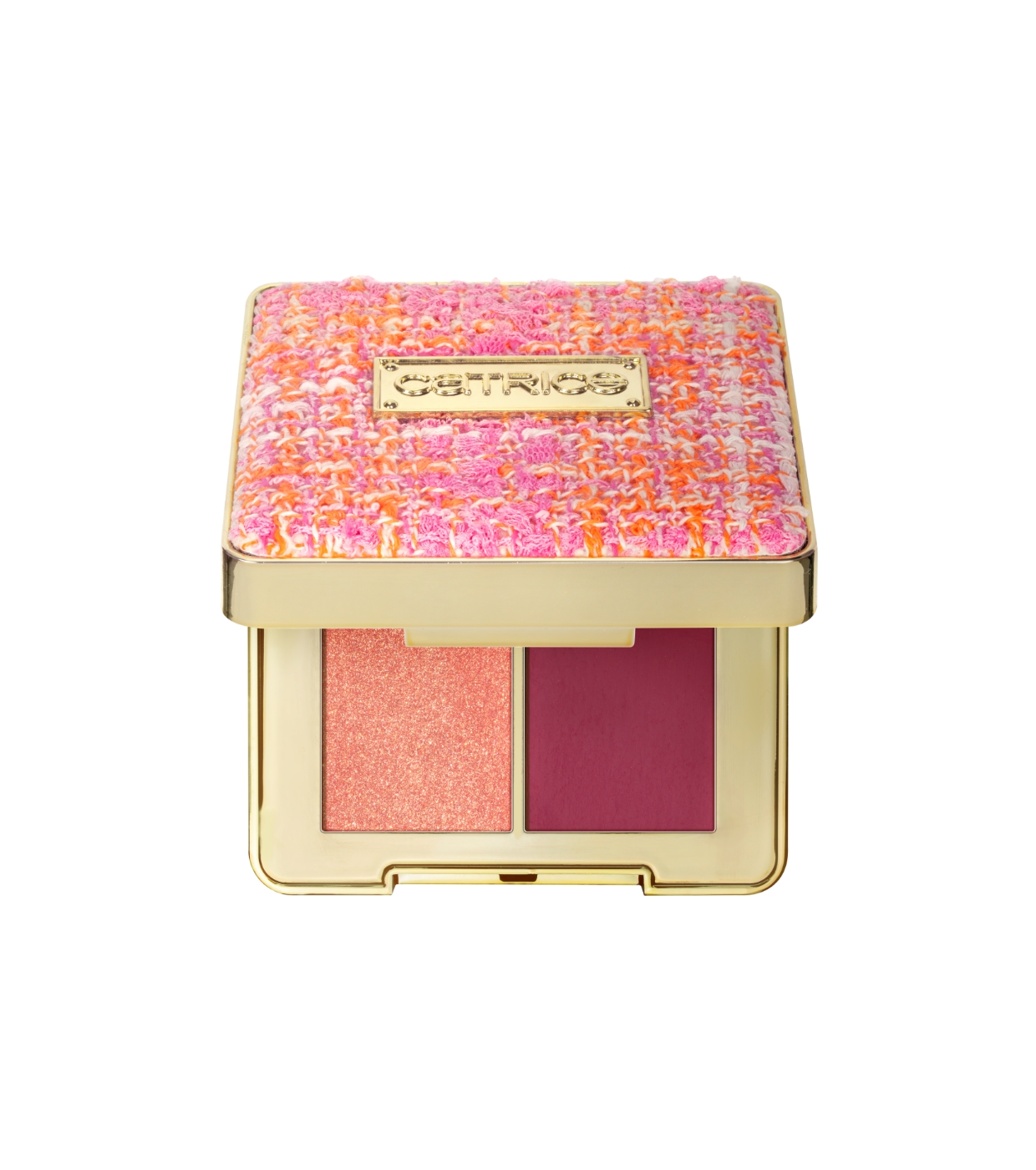 Este dúo iluminador para ojos y mejillas de Catrice combina dos tonos perfectamente coordinados para aportar color, dimensión y luminosidad al rostro.