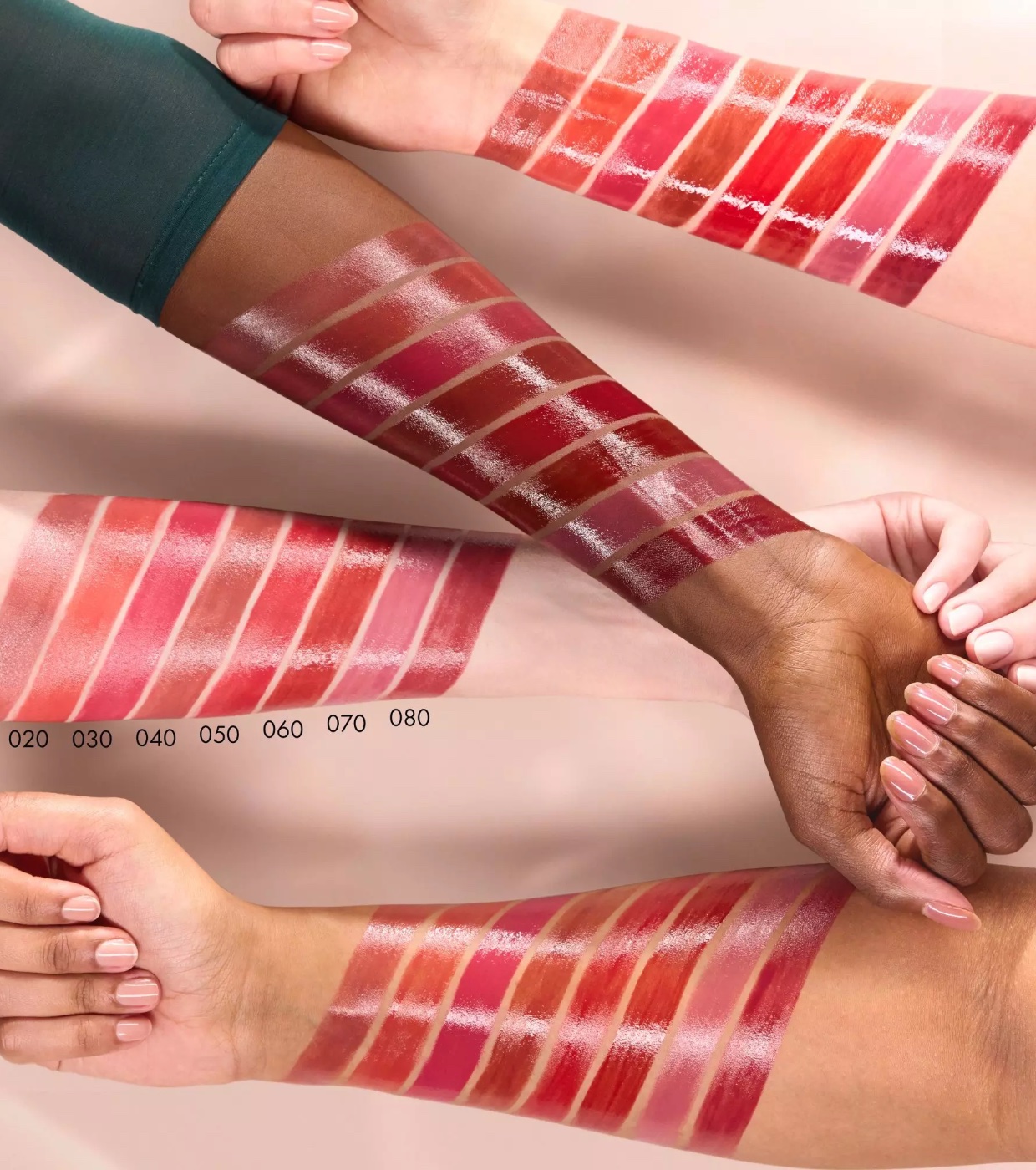 Este tinte labial ofrece un acabado brillante y translúcido, dejando un color vibrante con un efecto natural y luminoso.