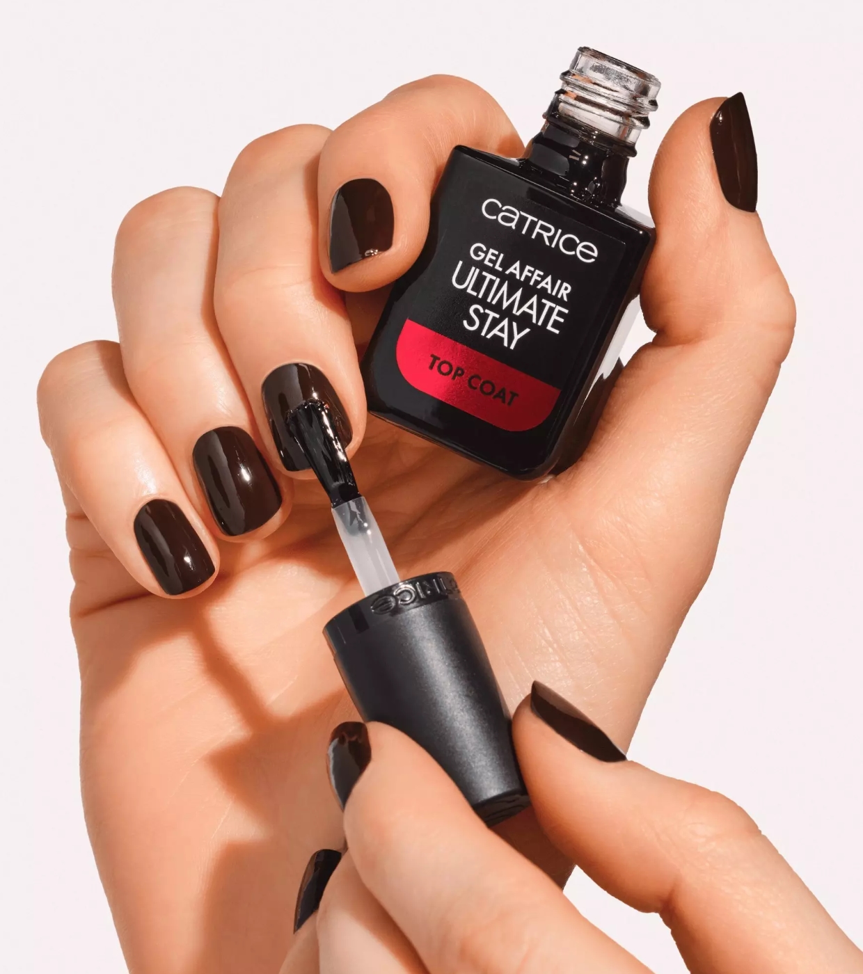 ¡Sella el trato con tu manicura de gel perfecta! Catrice Gel Affair Ultimate Stay Top Coat proporciona un acabado ultrabrillante y voluminoso a la vez que prolonga la duración del esmalte de uñas, ¡sin necesidad de lámpara UV!