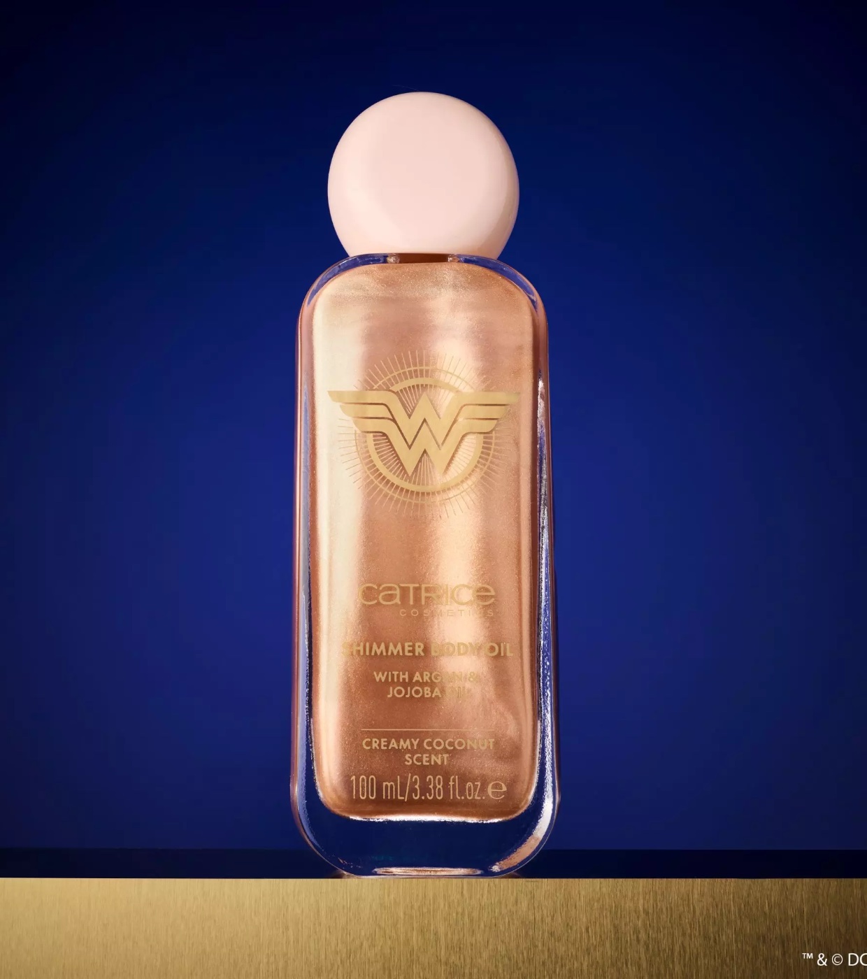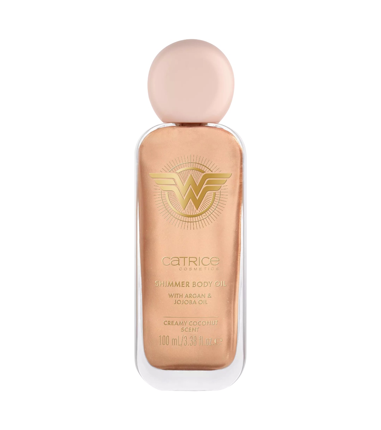 Aceite corporal con shimmer Wonder Woman de Catrice 010 Goddess, ¡Deslumbra con un brillo radiante y una piel suave como la seda!