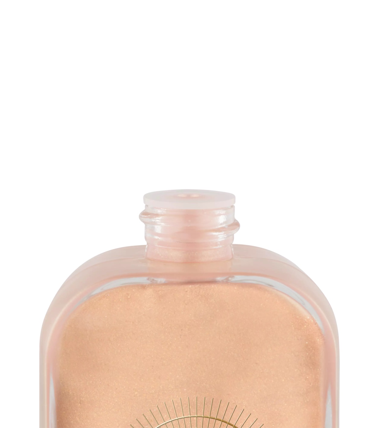 Un aceite corporal que proporciona un resplandor dorado, con partículas de brillo multidimensionales y un delicado aroma a coco.