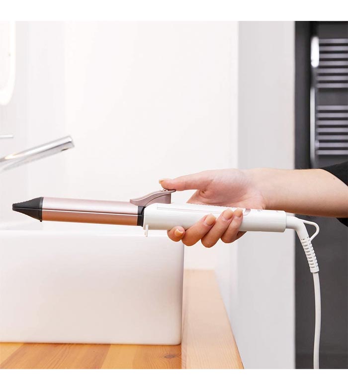 El diámetro de la tenacilla es de 28 mm, perfecto para rizos naturales y flexibles.