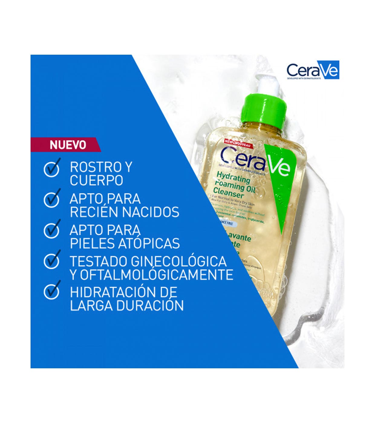 Aceite limpiador espumoso hidratante para piel normal a muy seca de Cerave.
