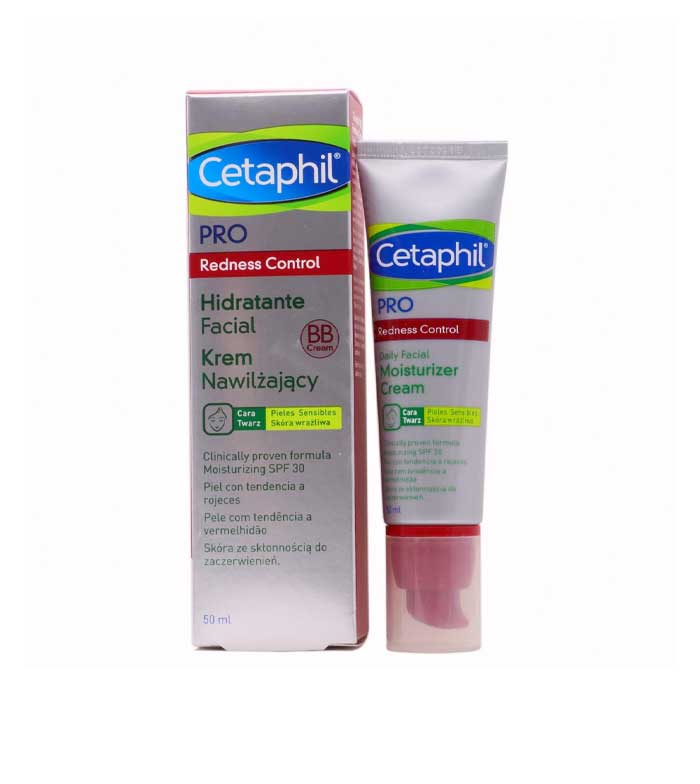 BB Cream Hidratante facial con factor de protección SPF 30 UVA/UVE de Cetaphil para pieles sensibles con tendencia al enrojecimiento.