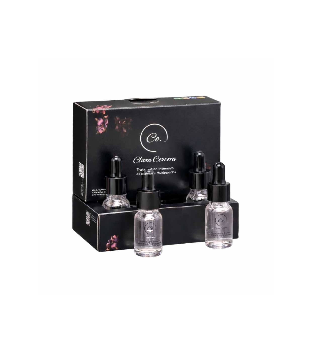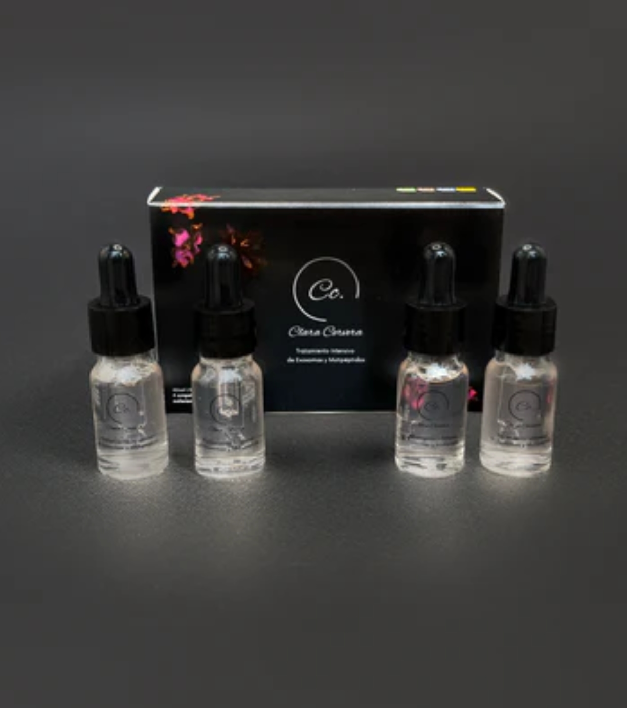 El Tratamiento intensivo de Exosomas y Multipéptidos de Clara Cervera trata de un sérum facial antiedad en 4 ampollas diseñado para potenciar la regeneración celular y combatir eficazmente los signos visibles del envejecimiento.