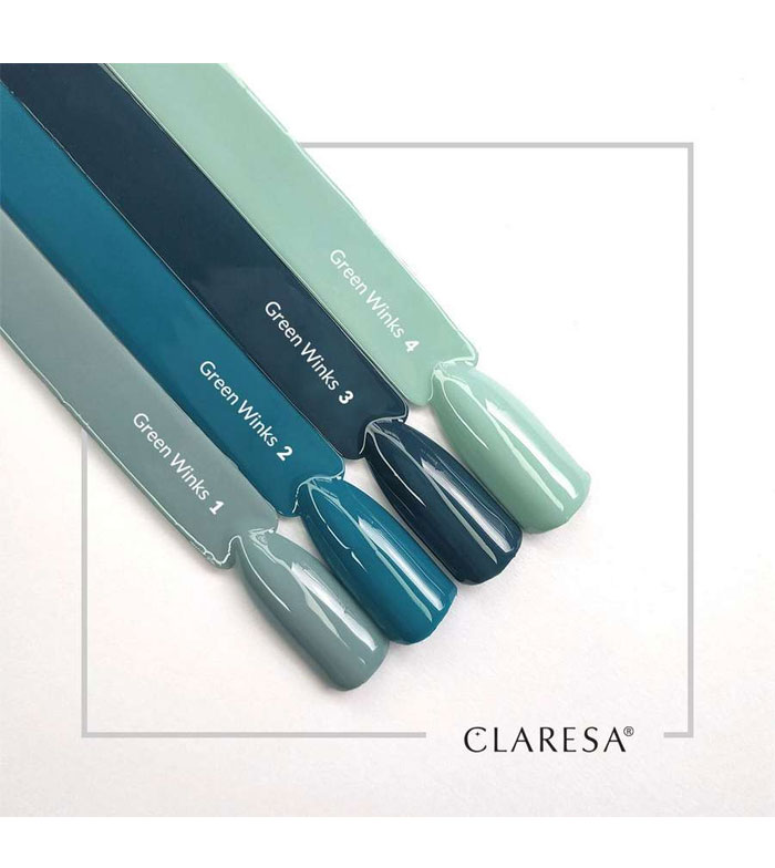 Los esmaltes semipermanentes Green Winks de Claresa tienen unos colores únicos y fuera de lo común, en tonos azules, grises y verdes que te robarán el corazón.