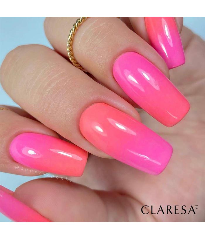 Los esmaltes semipermanentes de la gama Fluo de Claresa tienen unos colores vibrantes y llenos de energía que nos inspiran a disfrutar del sol con una manicura que no pasará desapercibida.