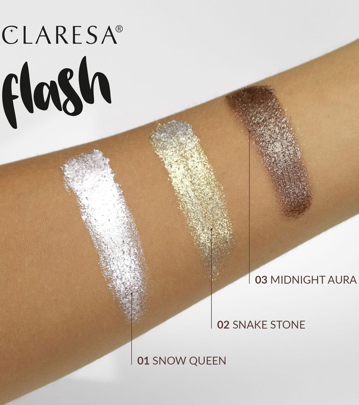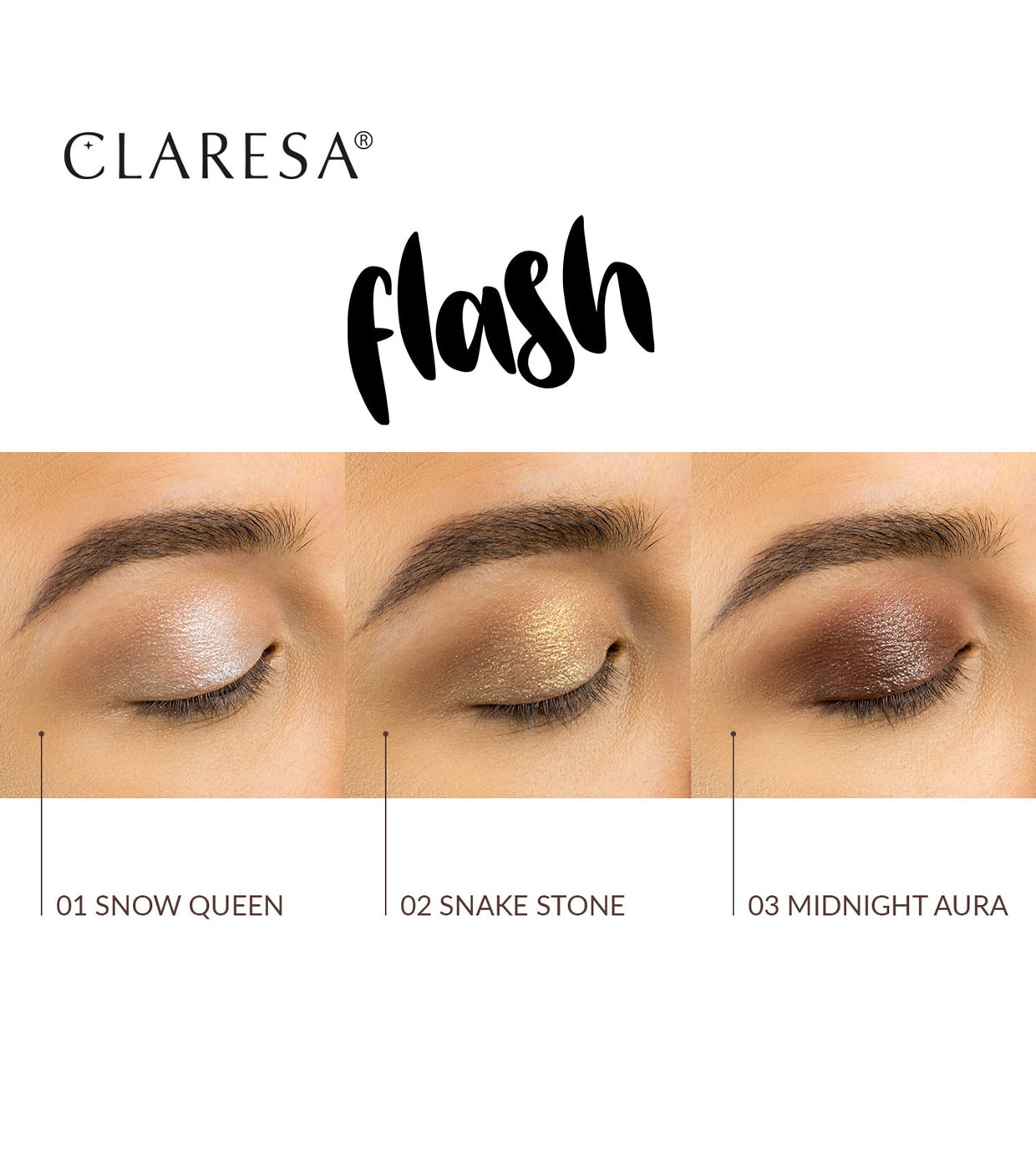 Descubre la sombra de ojos FLASH de Claresa, llevando el maquillaje a un nivel completamente nuevo de intensidad y luminosidad.