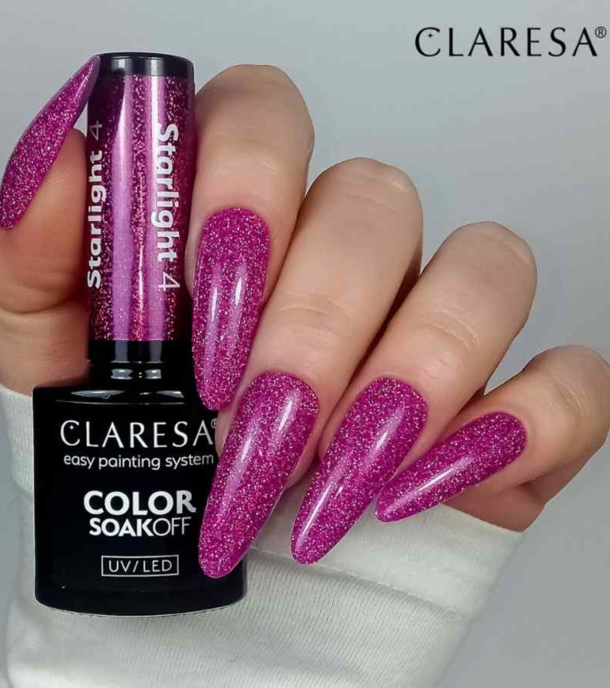 El esmalte semipermanente Soak off de la colección Starlight de Claresa trae todo el brillo y la elegancia que necesitas para unas fiestas inolvidables.