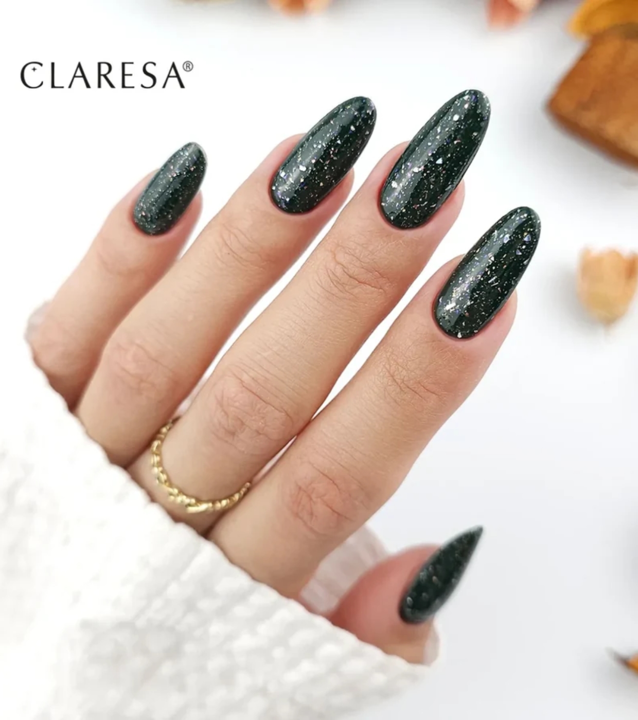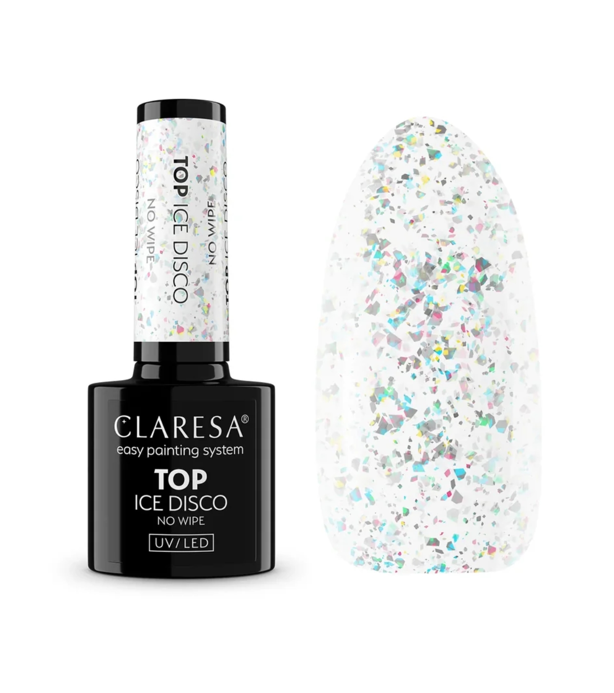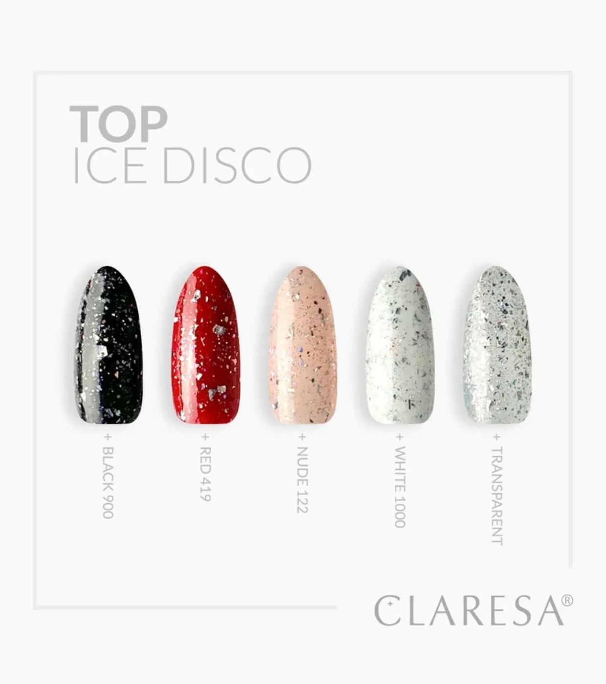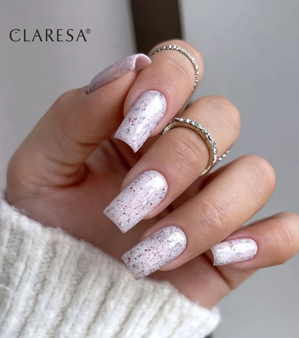 Dale un giro elegante a cualquier manicura en segundos con este top coat transparente de Claresa con láminas de plata.