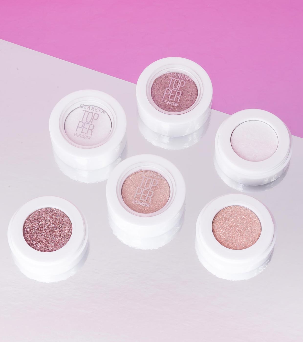 Topper para sombras de ojos de Claresa con partículas multicromáticas para un look de ojos de lo más intenso.
