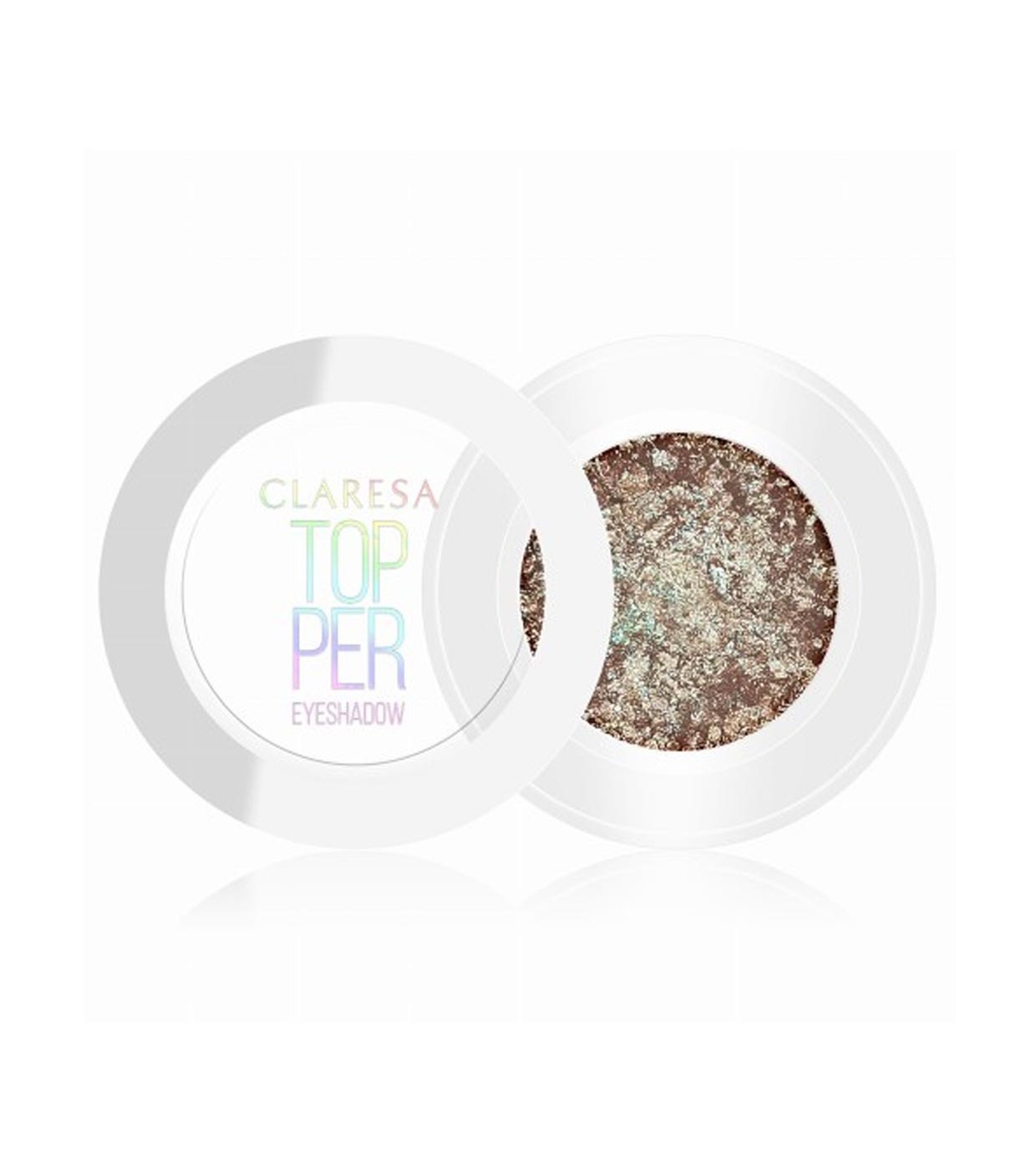 Topper para sombras de ojos de Claresa con partículas multicromáticas para un look de ojos de lo más intenso.