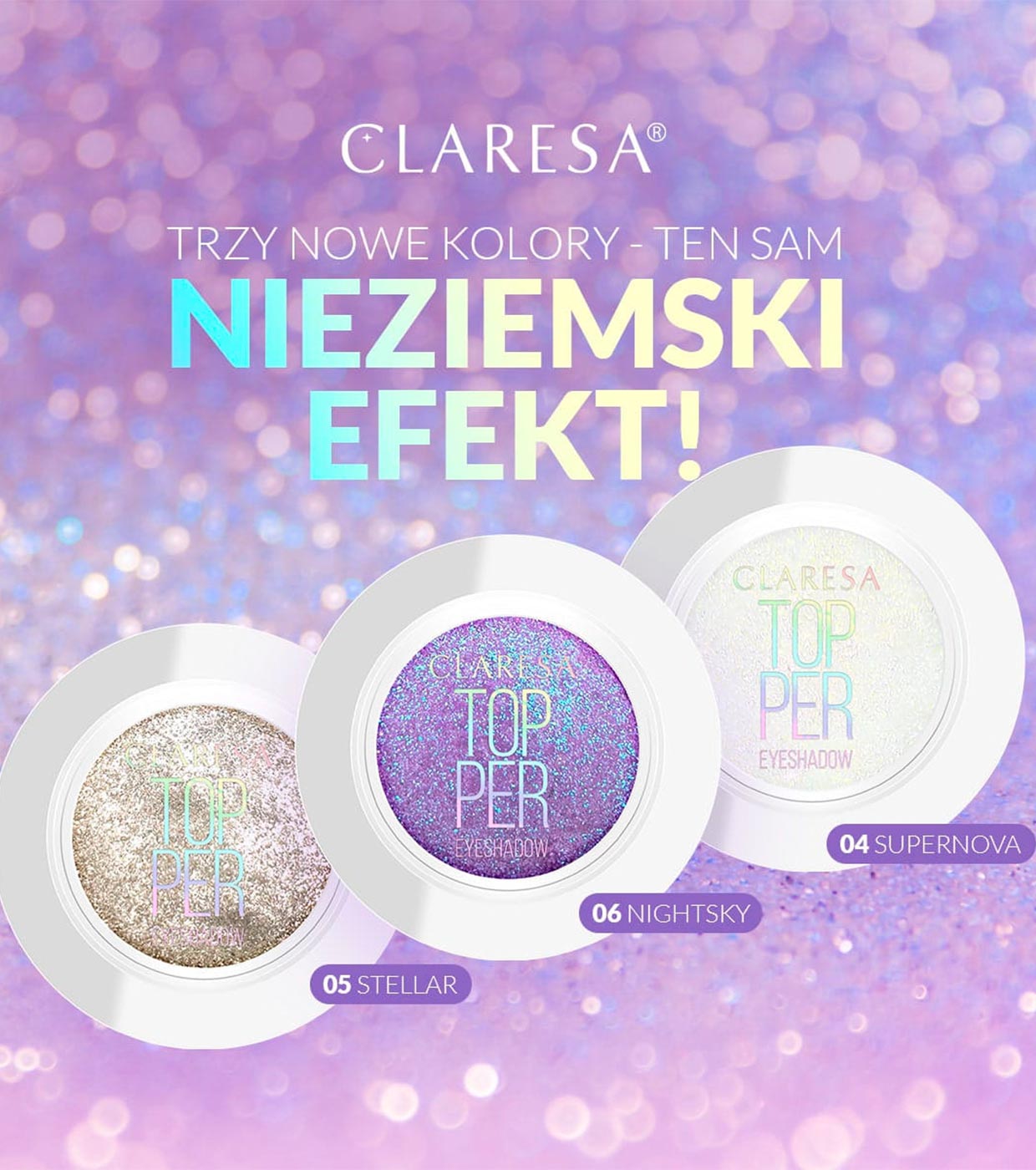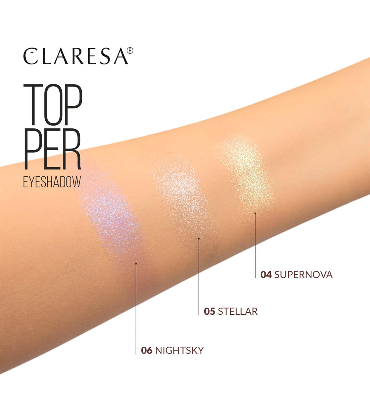 Topper para sombras de ojos de Claresa con partículas multicromáticas para un look de ojos de lo más intenso.