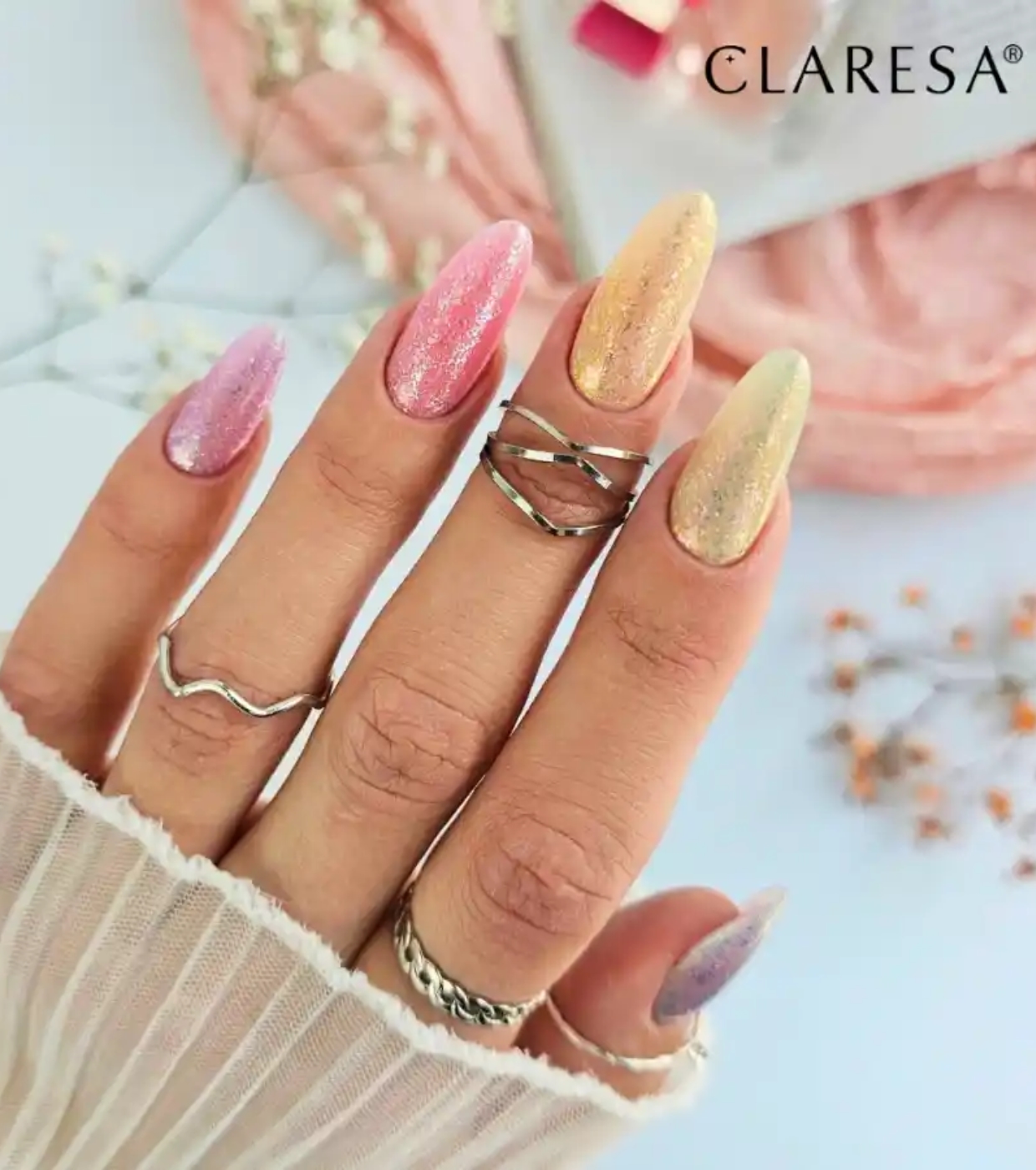 El esmalte semipermanente Soak off de la colección Unicorn Glow de Claresa está formada por 5 esmaltes semipermanentes con partículas opalescentes que refractan la luz.