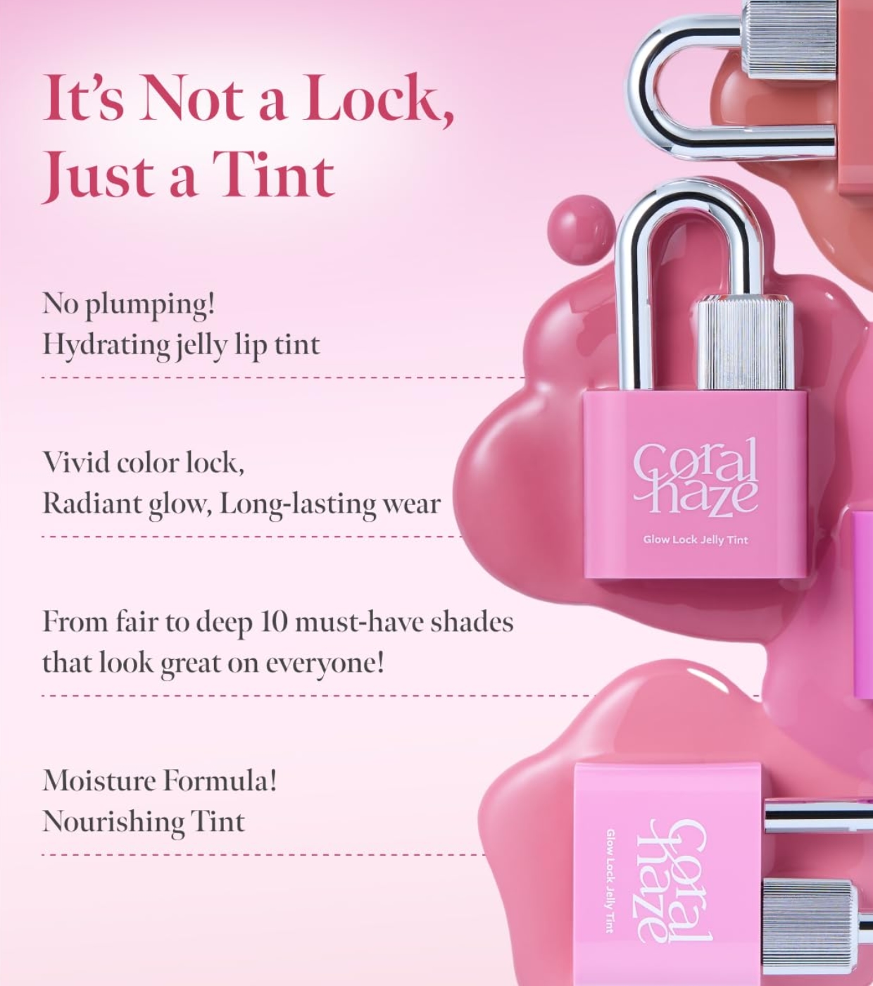 El tinte para labios Glow Lock Jelly Tint de Coralhaze transforma tu maquillaje con un efecto luminoso único que realza la belleza natural de tus labios.