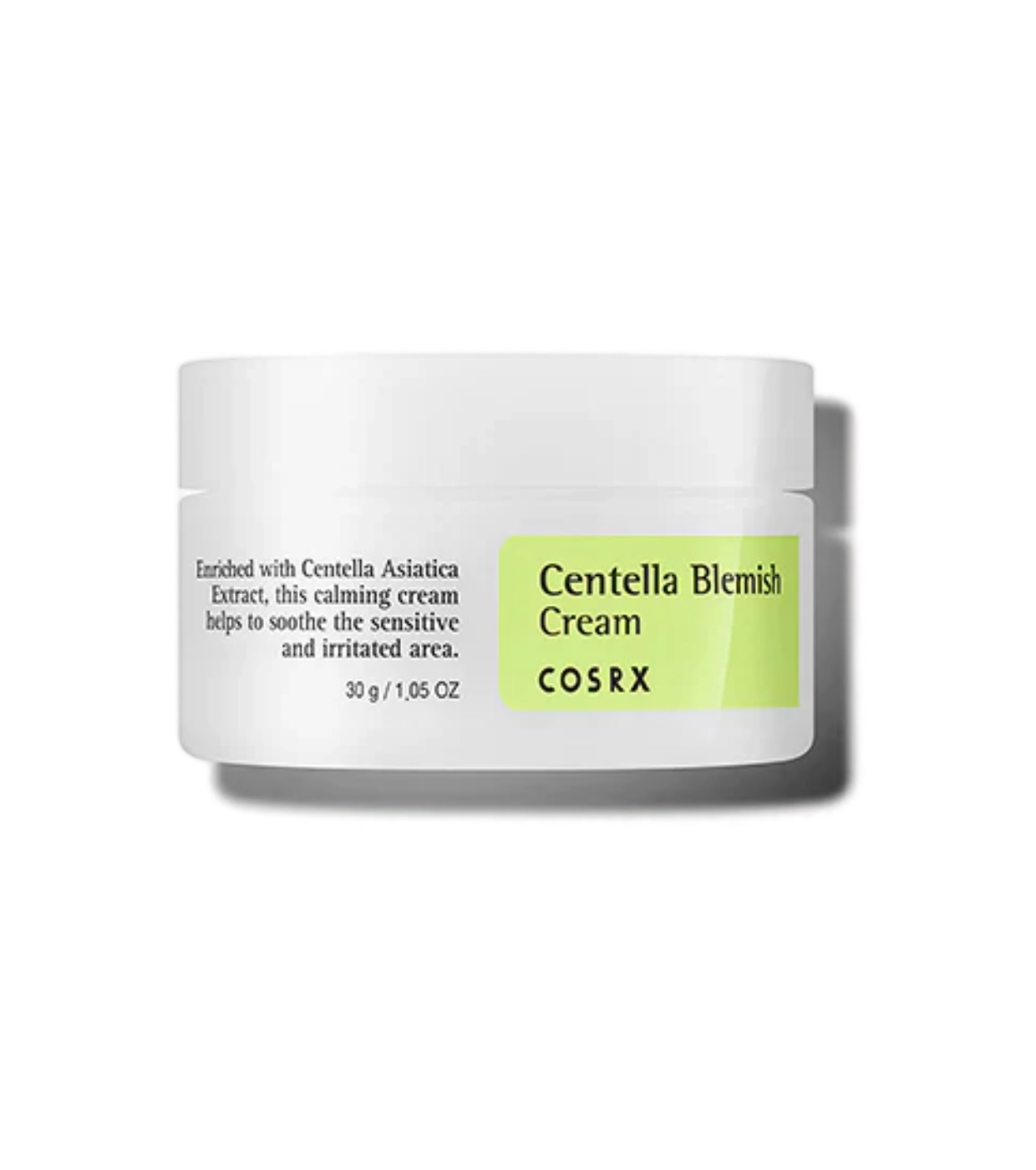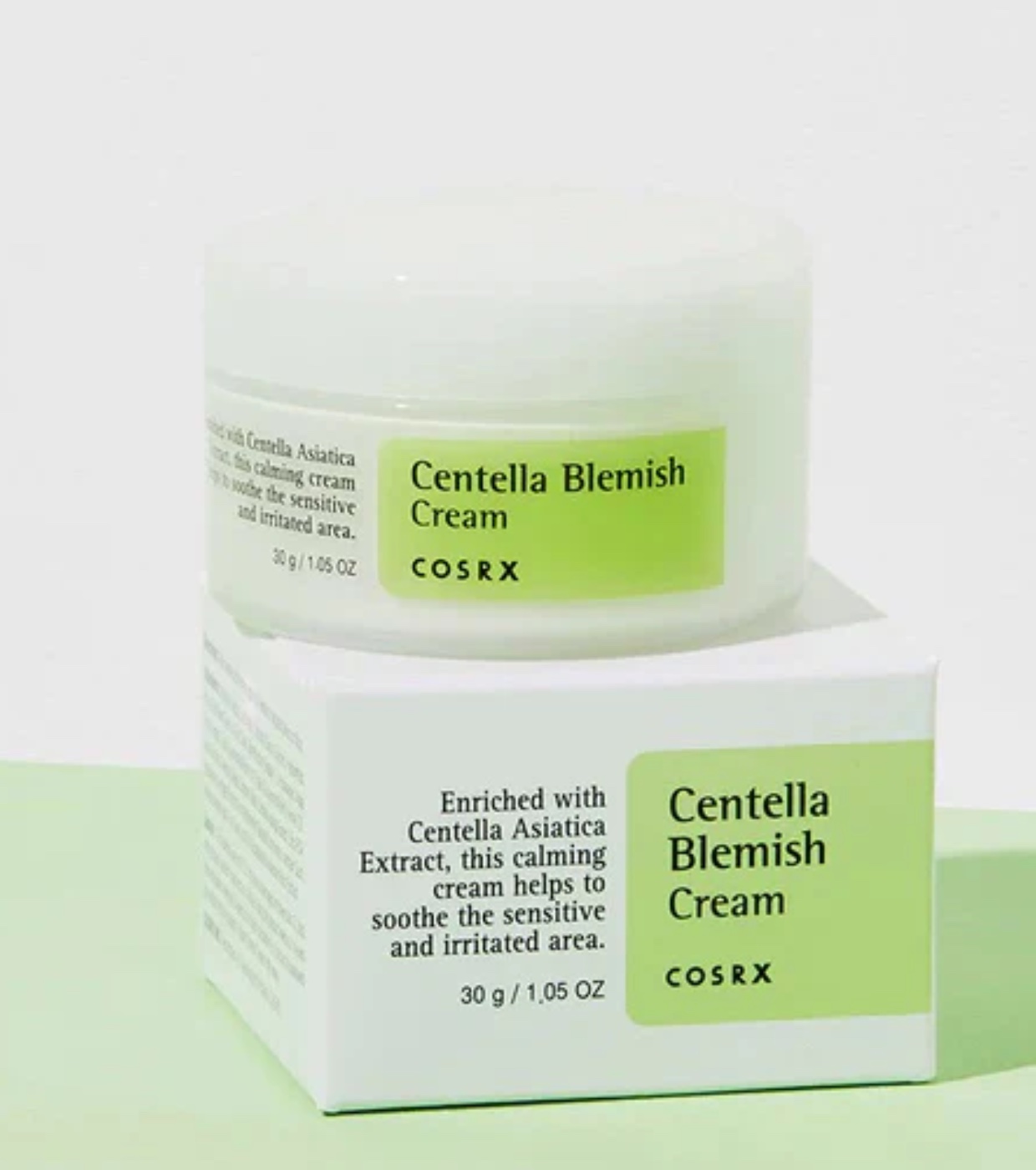 Descubre la crema facial antimanchas Centella Blemish Cream de COSRX, una crema especializada para pieles sensibles, propensas al acné y con marcas de acné pasado.