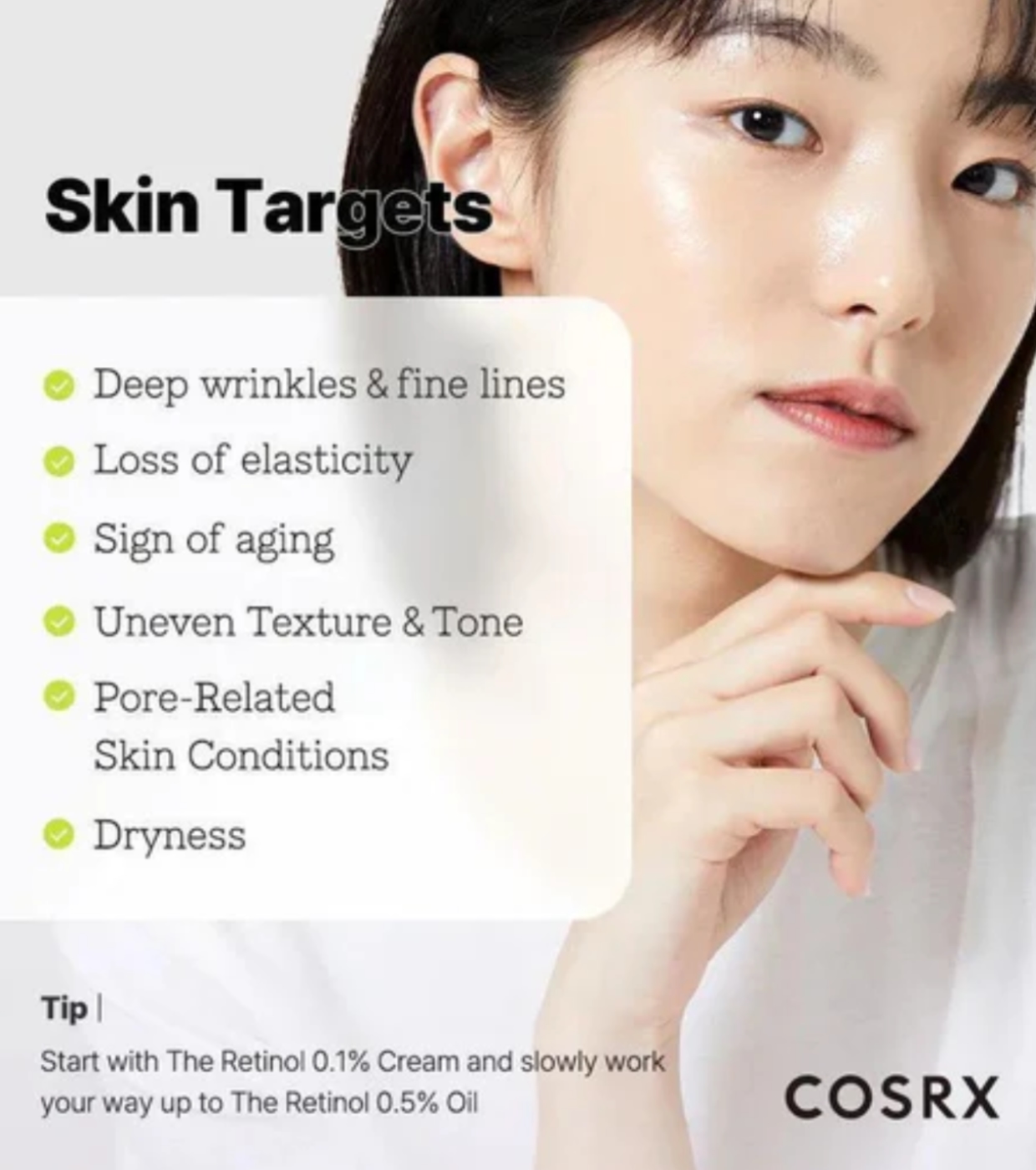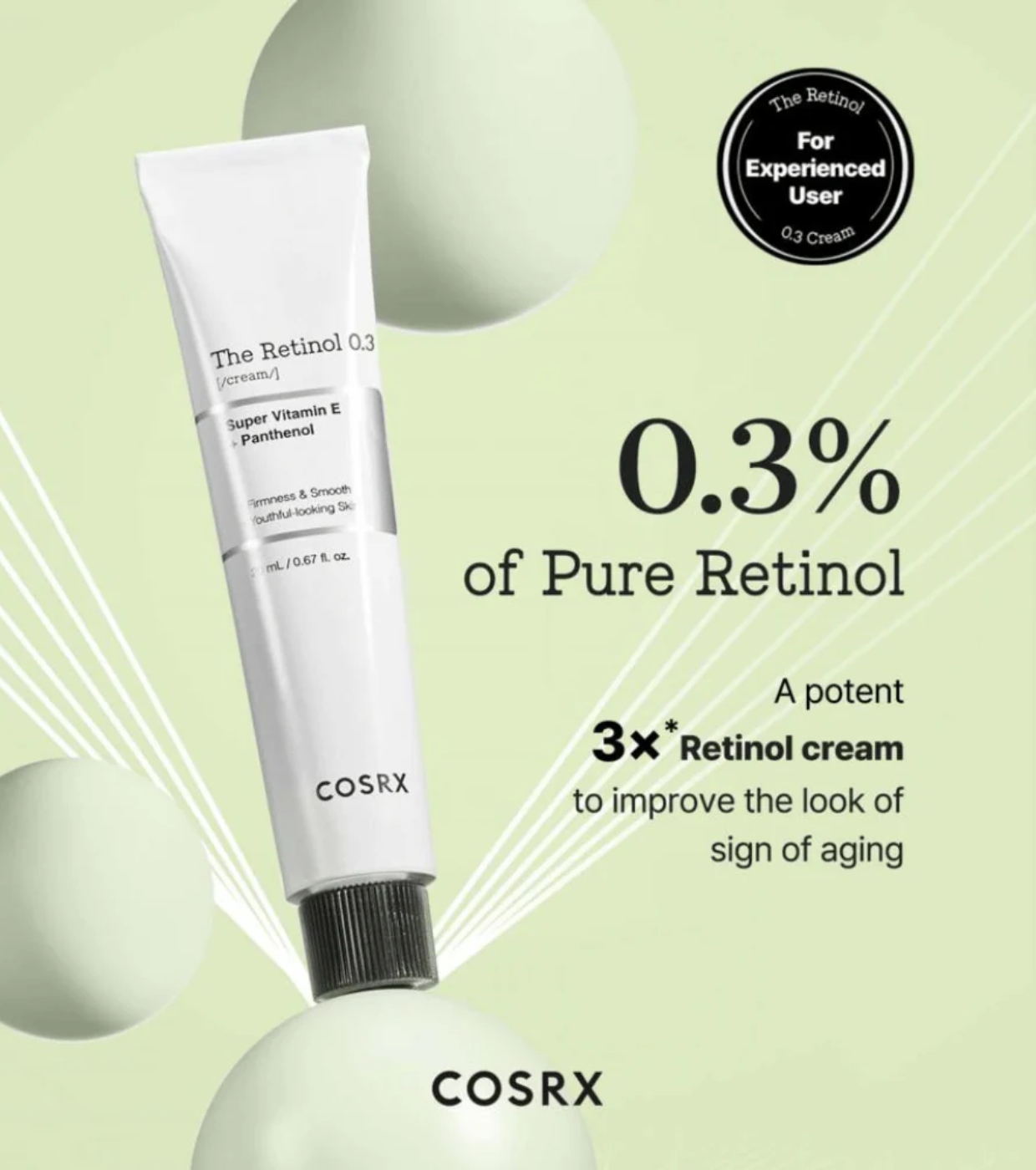 La crema The Retinol 0.3 de CORSX es una crema de tratamiento con retinol al 0,3 %, diseñada para mejorar visiblemente la calidad de la piel mediante un equilibrio óptimo entre eficacia y tolerancia.
