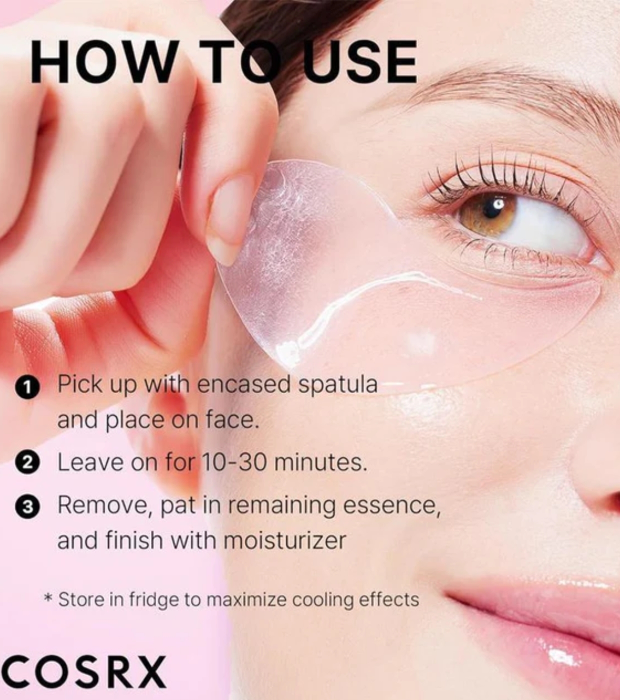 Coloca un parche debajo de cada ojo, asegurándote de que se ajuste cómodamente.