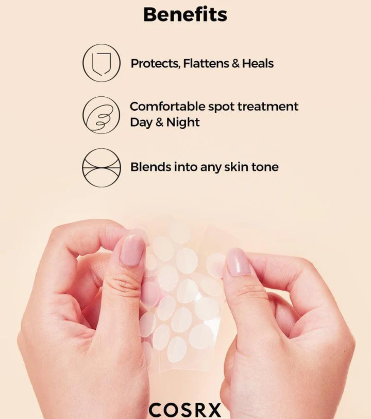 - El parche original, ahora mejorado. Fabricado con hidrocoloide de alta calidad y adecuado para todo tipo de piel. Diseñado con líneas de corte para una aplicación fácil y precisa.