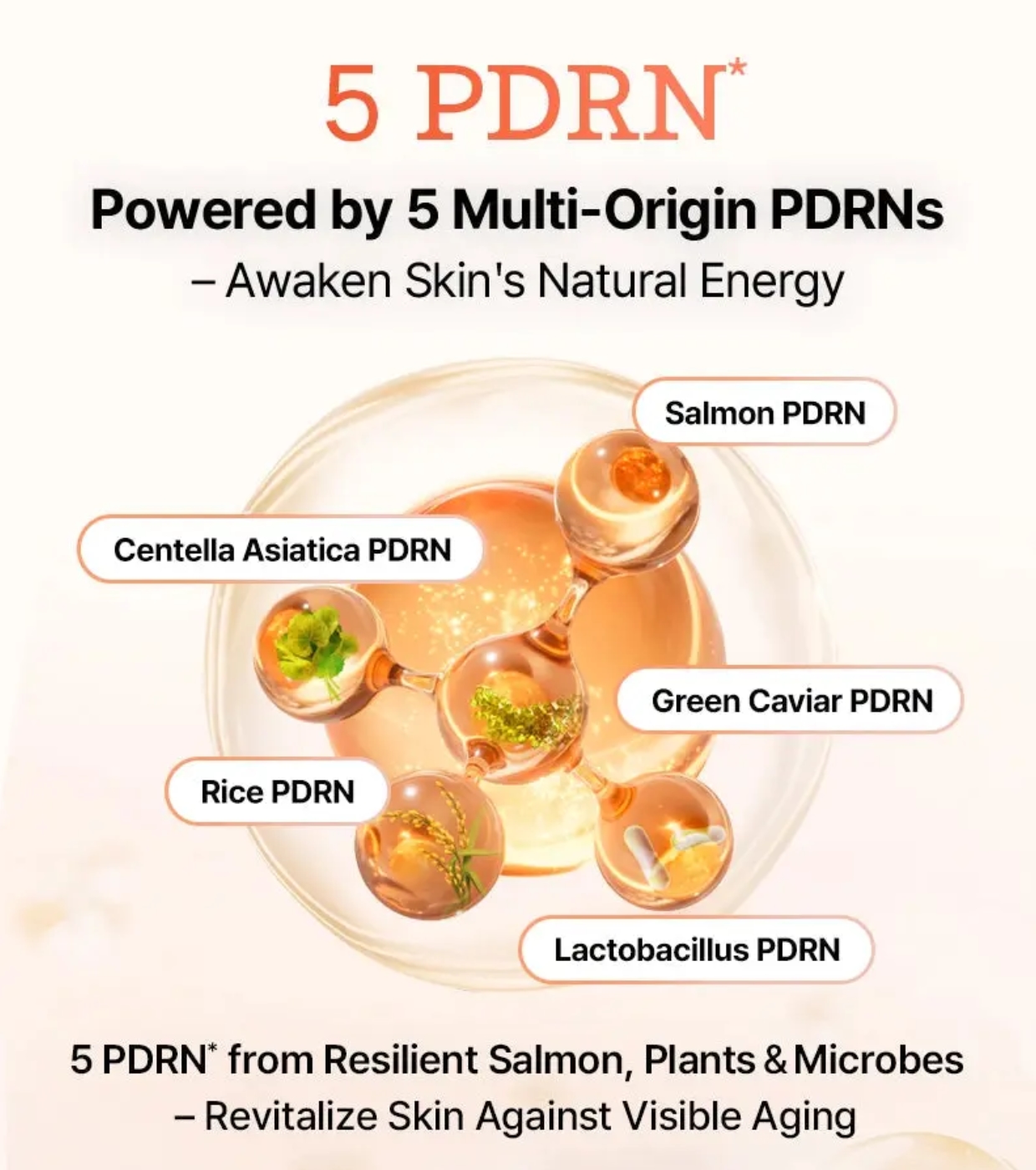 Formulada con 5 PDRN y ocho tipos de ácido hialurónico, proporciona una hidratación profunda mientras mejora visiblemente la textura y aporta un efecto piel más rellena y luminosa.