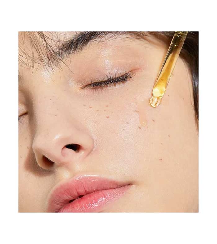 Agitar suavemente el frasco de un lado a otro una o dos veces y aplicar unas gotas sobre la piel limpia. A continuación, masajear suavemente el sérum, comenzando por el interior del rostro.