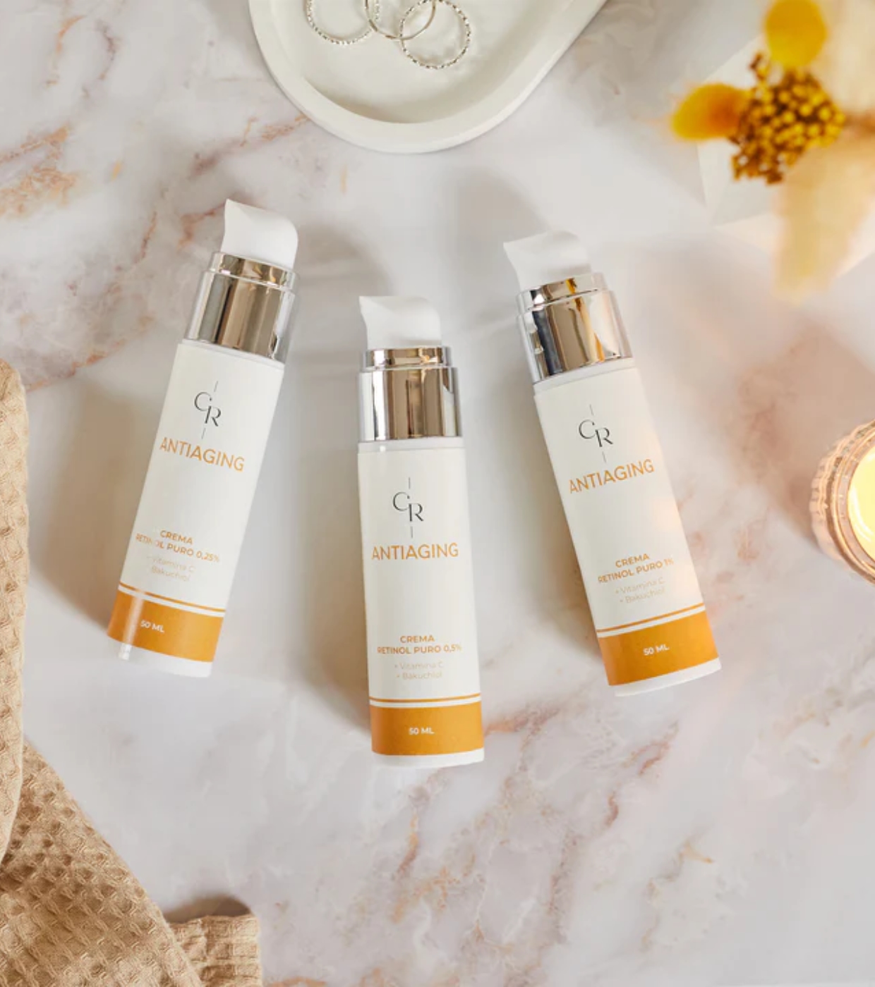 La Crema facial nutritiva Retinol Puro 1% de CR Cosmetics es un tratamiento nocturno avanzado diseñado para reducir arrugas, mejorar la textura y unificar el tono de la piel.