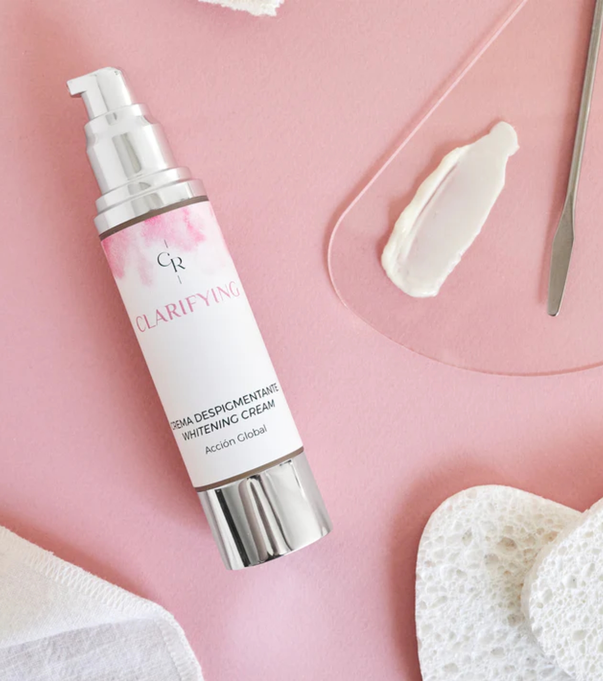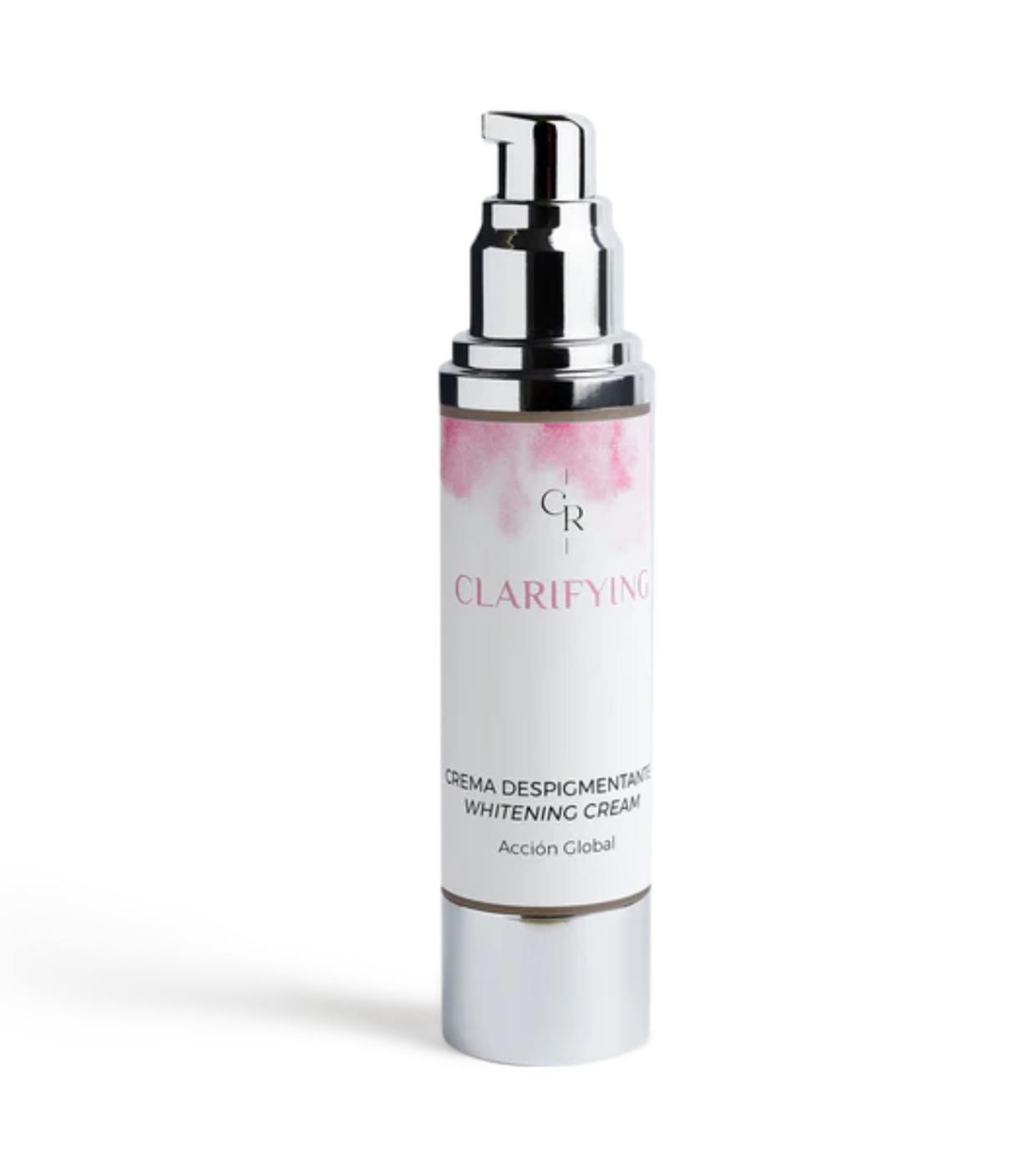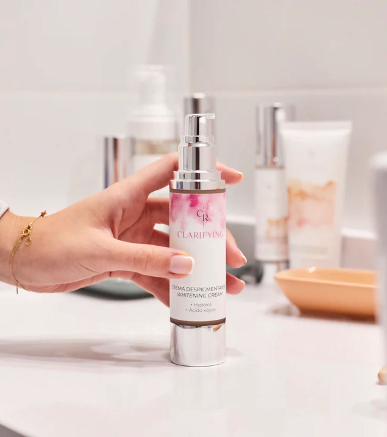 La crema despigmentante de CR Cosmetics es una fórmula avanzada diseñada para combatir la hiperpigmentación resistente, reduciendo manchas de origen diverso como melasma, lentigos solares, hiperpigmentación postinflamatoria (HPI) y marcas de acné.