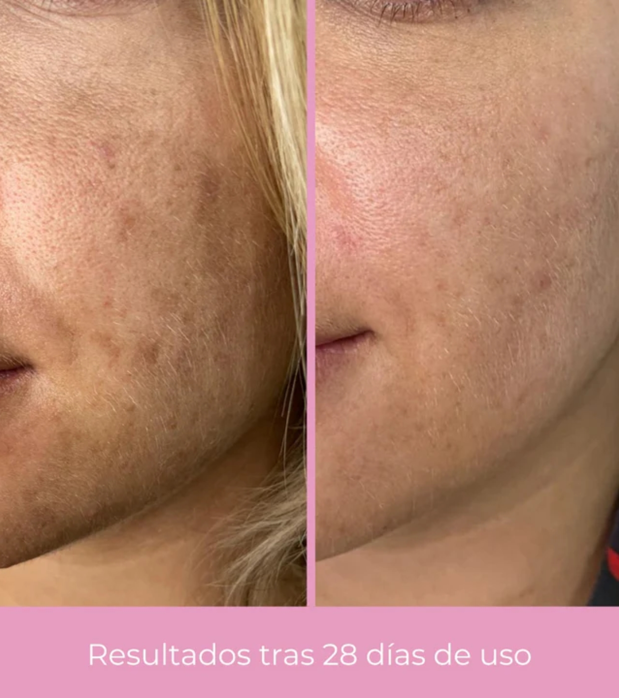 - Corrige manchas oscuras y unifica el tono, combatiendo la hiperpigmentación en todas sus formas.