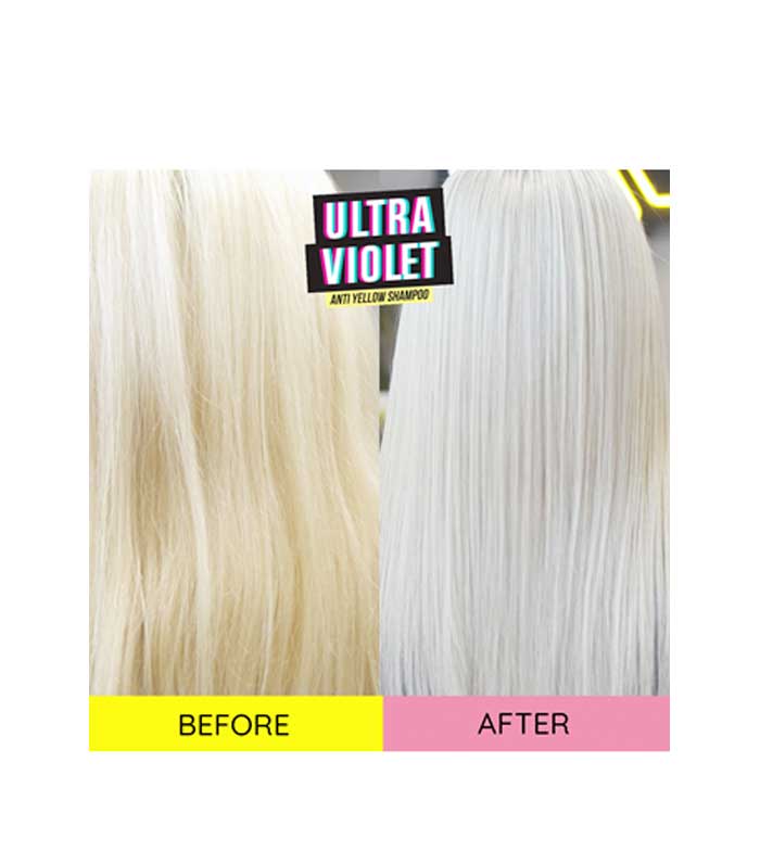 Lava tu cabello con el champú Ultra Violet Anti Yellow y mantén tu tono perfecto sin que se modifique.