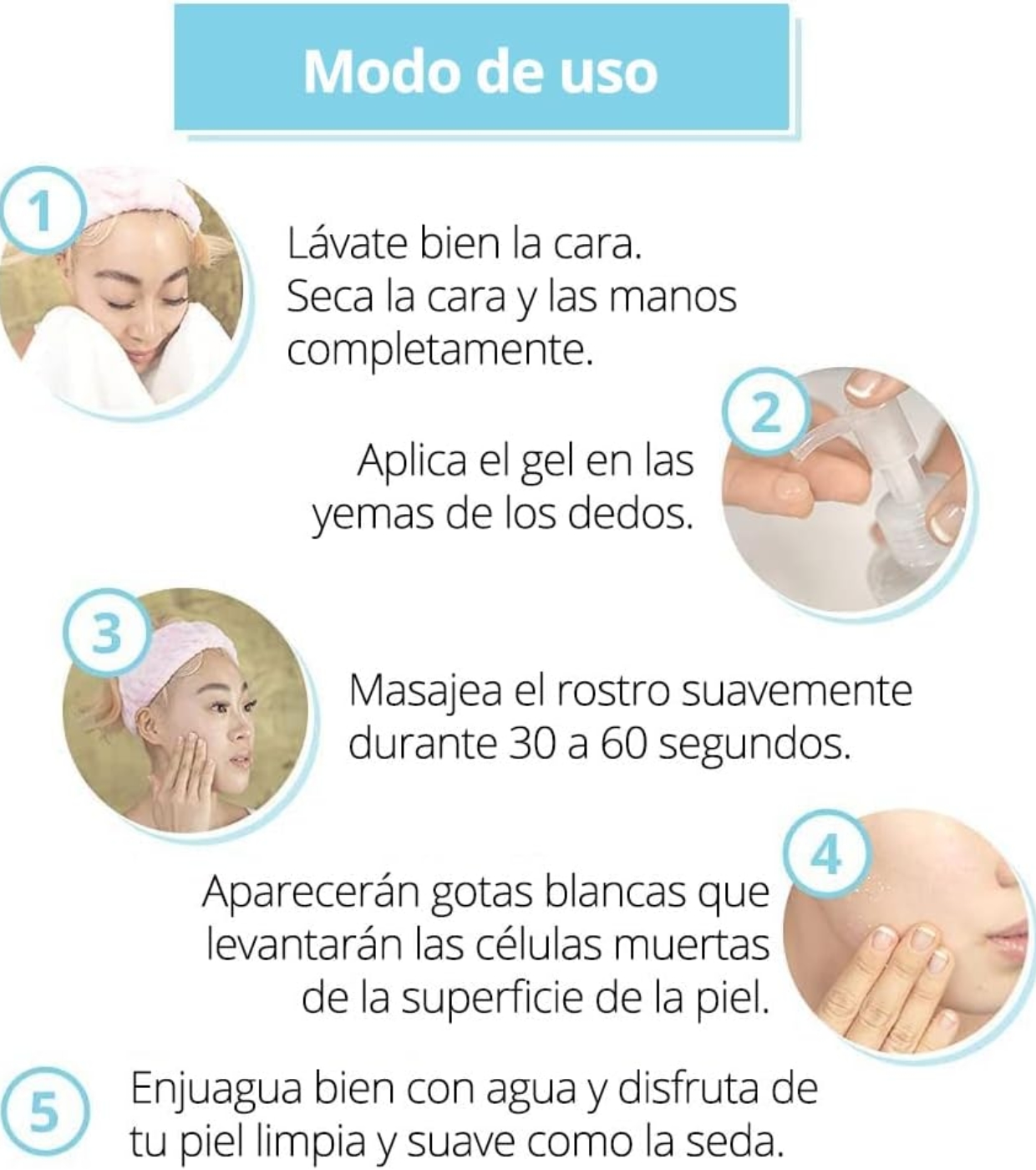 Con la piel limpia, aplique Natural Cure Aqua Gel y masajee con movimientos circulares de 30 segundos a 1 minuto.