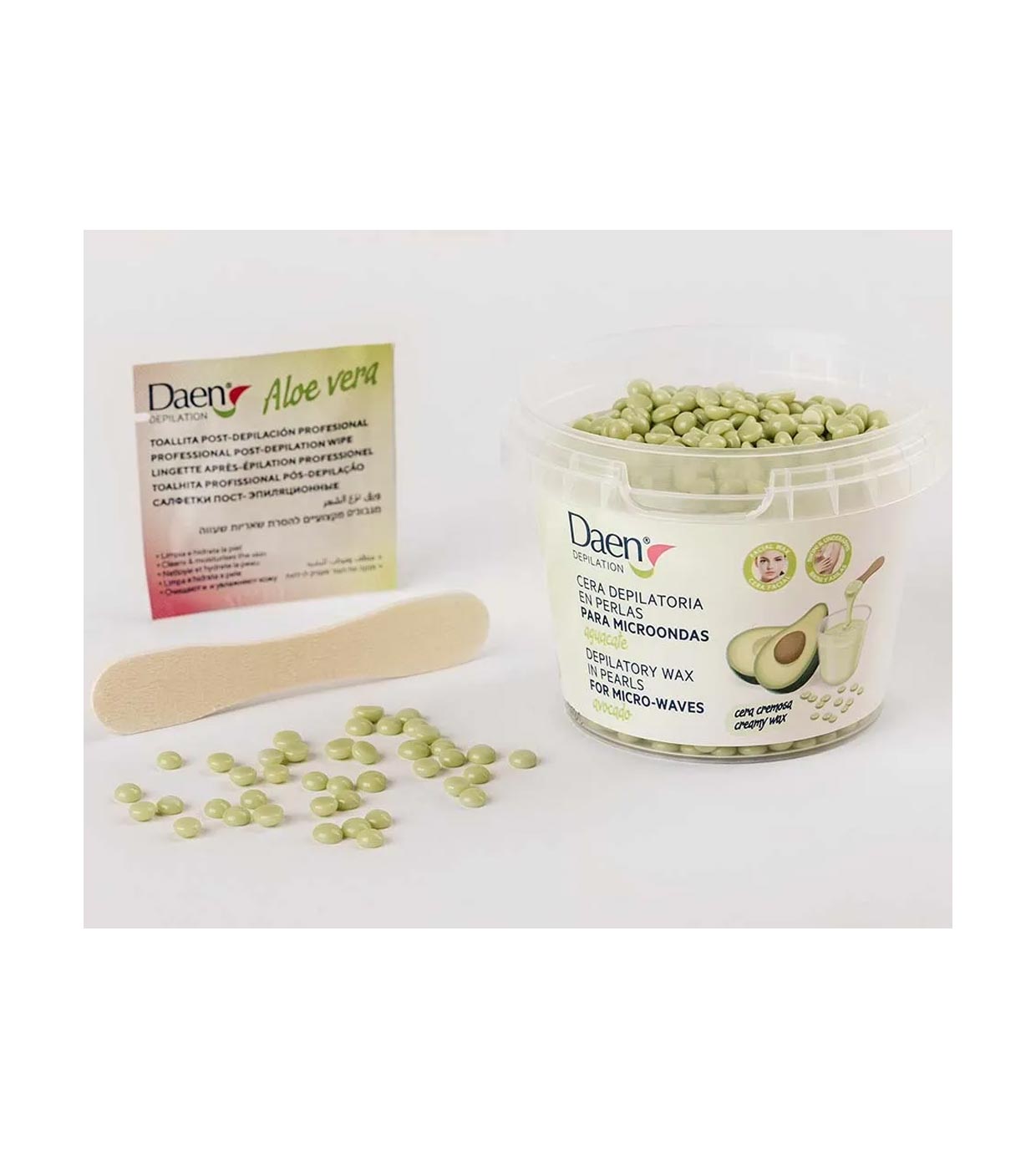 La cera depilatoria en perlas para microondas de Daen es ideal para una depilación cómoda y eficaz.