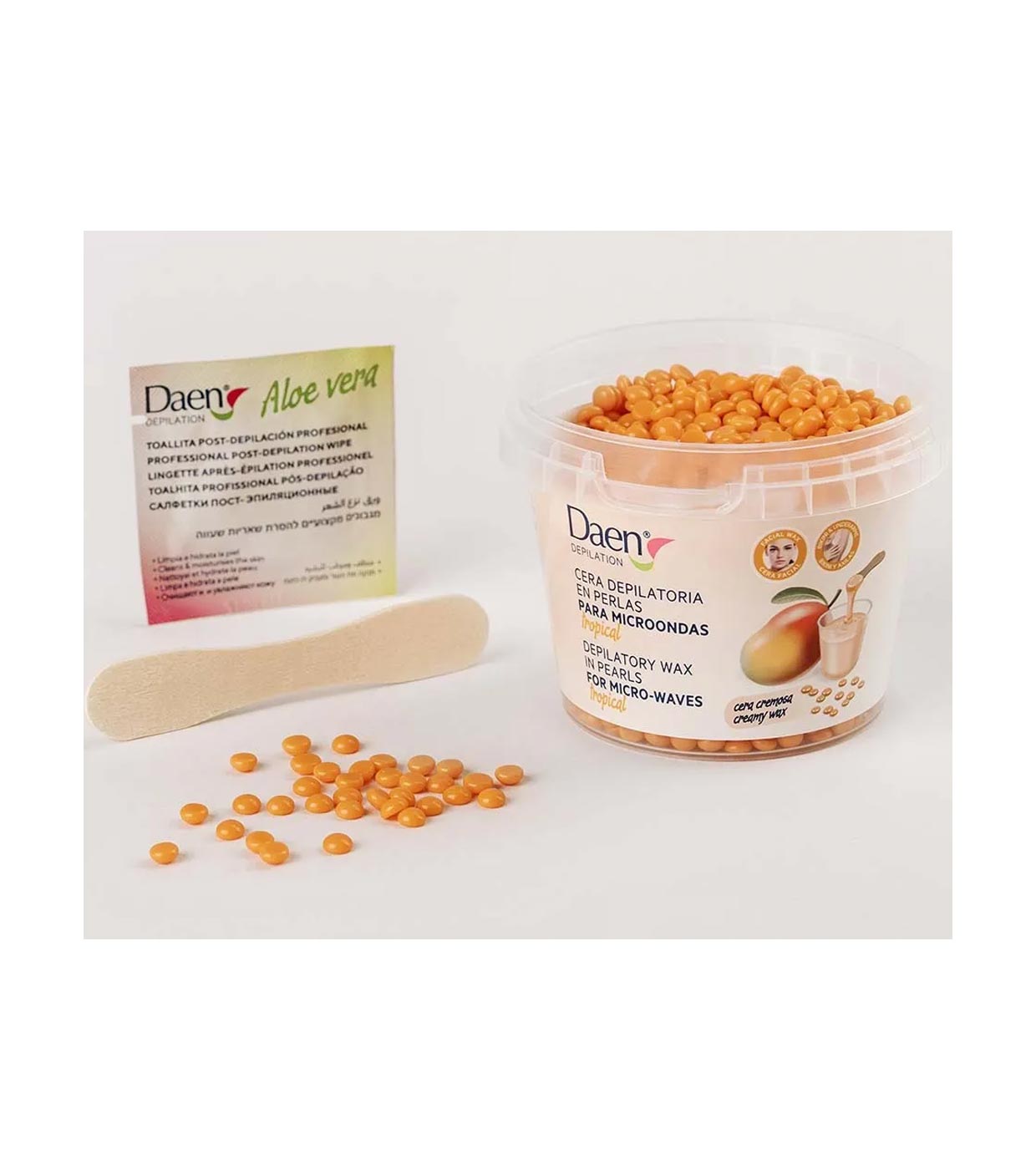 La cera depilatoria en perlas para microondas de Daen es ideal para una depilación cómoda y eficaz.