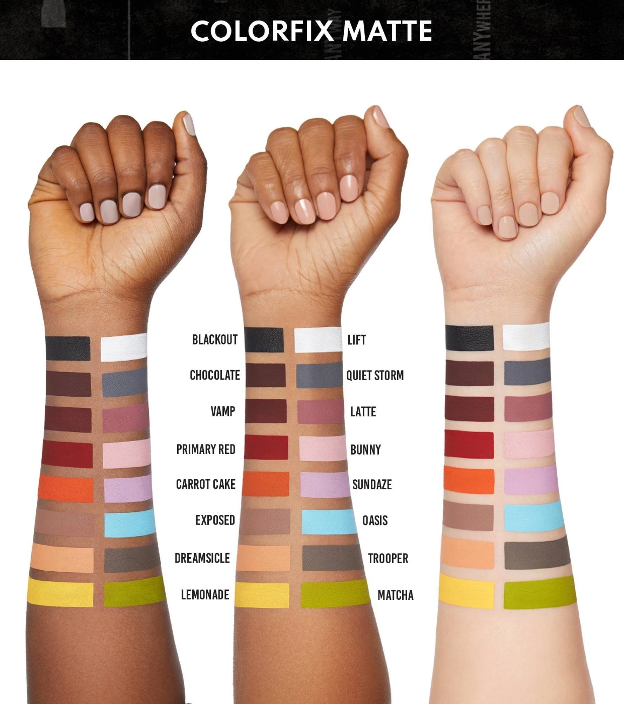 La gama Mattes de los ColorFix está disponible en varios tonos, desde los más naturales a los más vibrantes para que puedas combinarlos entre si y obtener más amplitud de tonos.