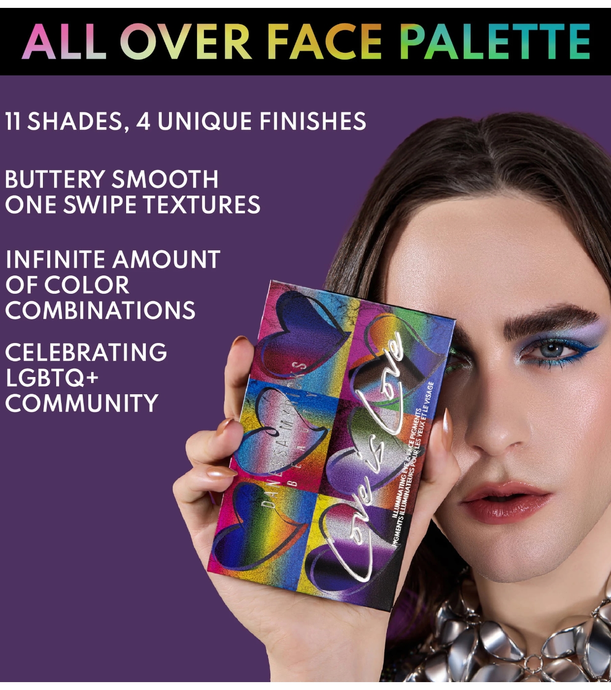 Esta paleta de de rostro Love is Love de Danessa Myricks de 11 tonos multicromáticos ofrece acabados versátiles diseñados para todo tipo de piel.