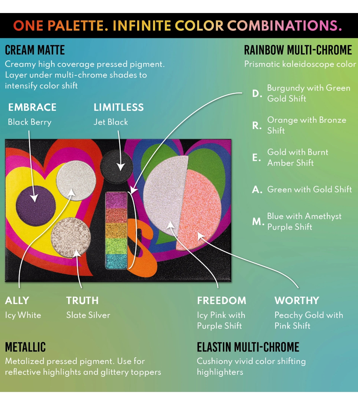 Inspirada en la comunidad LGBTQ+, esta paleta es perfecta para quienes buscan un maquillaje inclusivo y lleno de color.