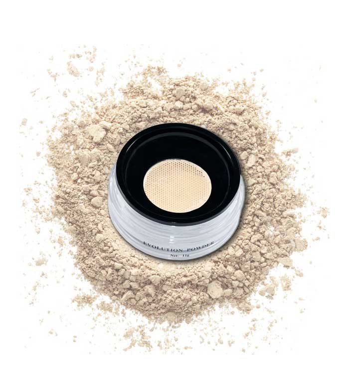 Polvos sueltos Evolution Powder de Danessa Myricks con una textura microfina, ligera y translúcida.