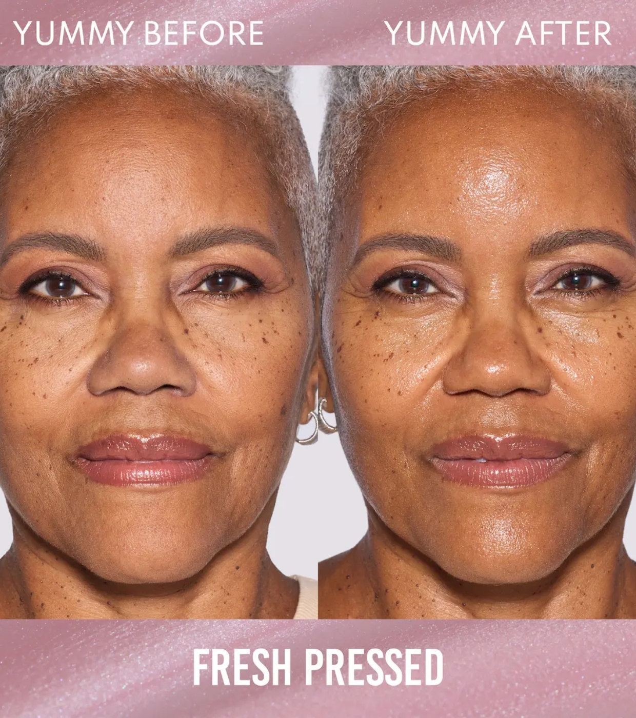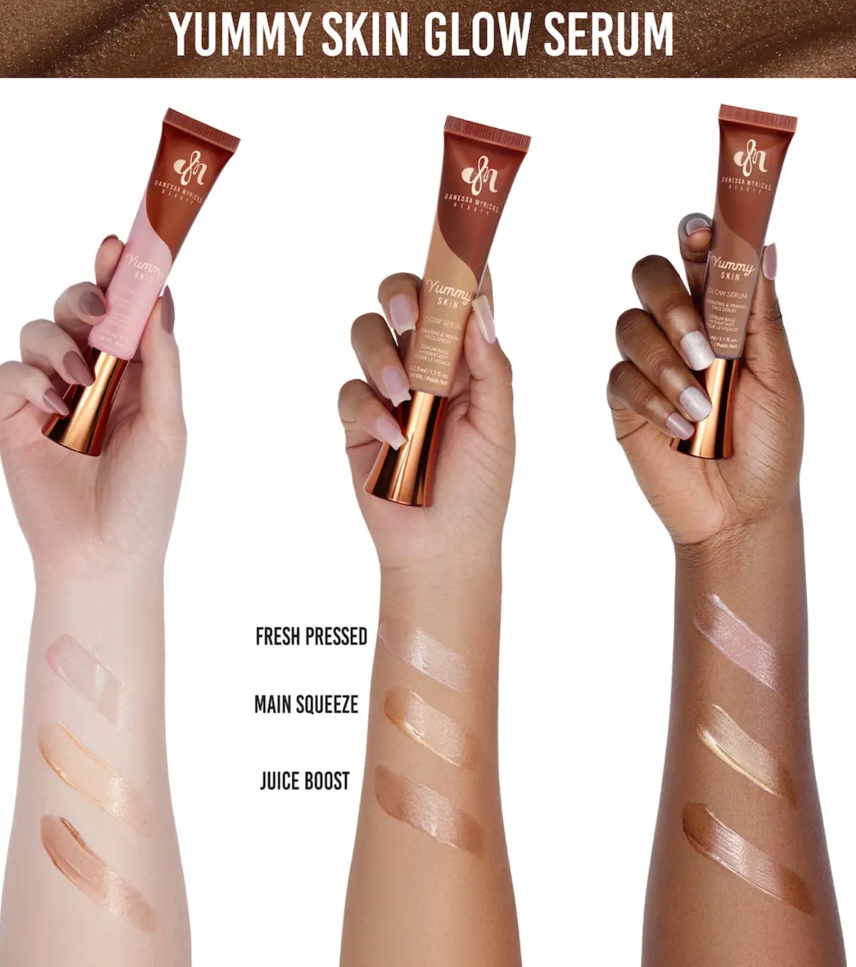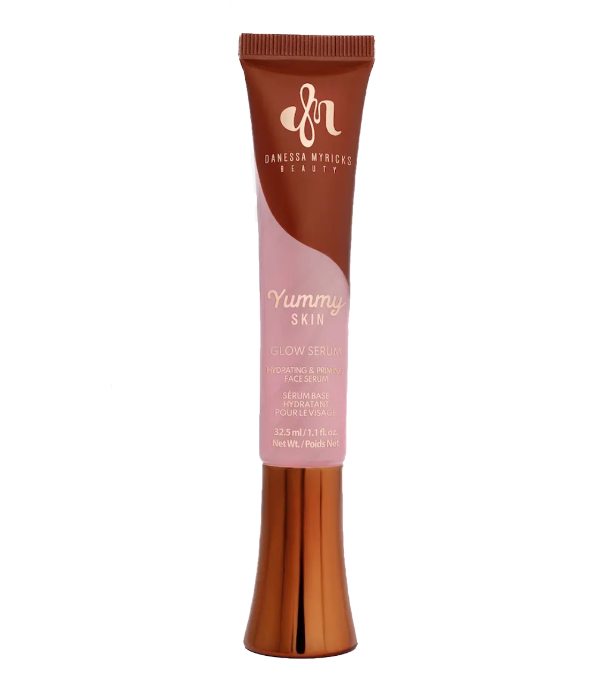 Esta prebase iluminadora Yummy Skin Glow Serum de Danessa Myricks contiene extractos de frutas ricos en antioxidantes como kiwi, pitaya, higo y granada para proteger la piel de los factores ambientales.