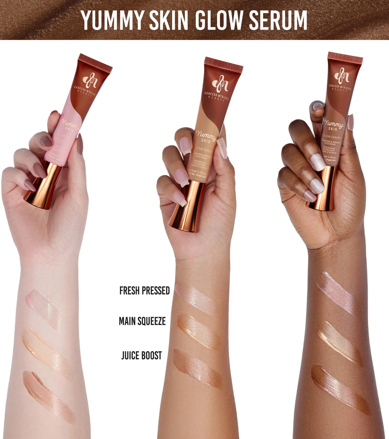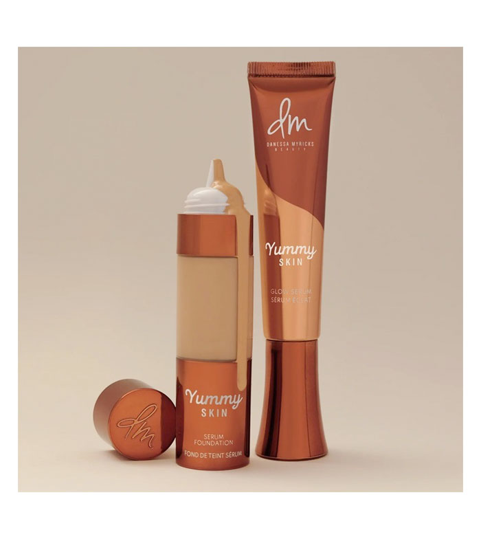 Esta prebase iluminadora Yummy Skin Glow Serum de Danessa Myricks contiene extractos de frutas ricos en antioxidantes como kiwi, pitaya, higo y granada para proteger la piel de los factores ambientales.